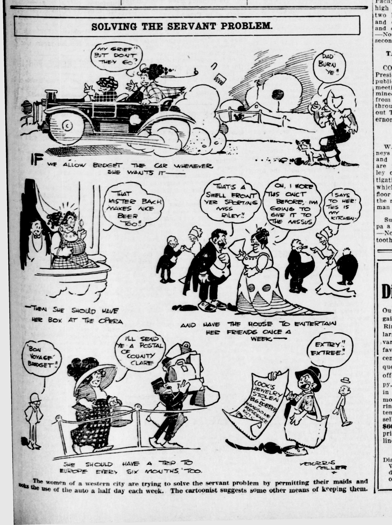 La Crosse Tribune, July 13, 1912 p5. A comic proposes a solution to the ‘servant problem’