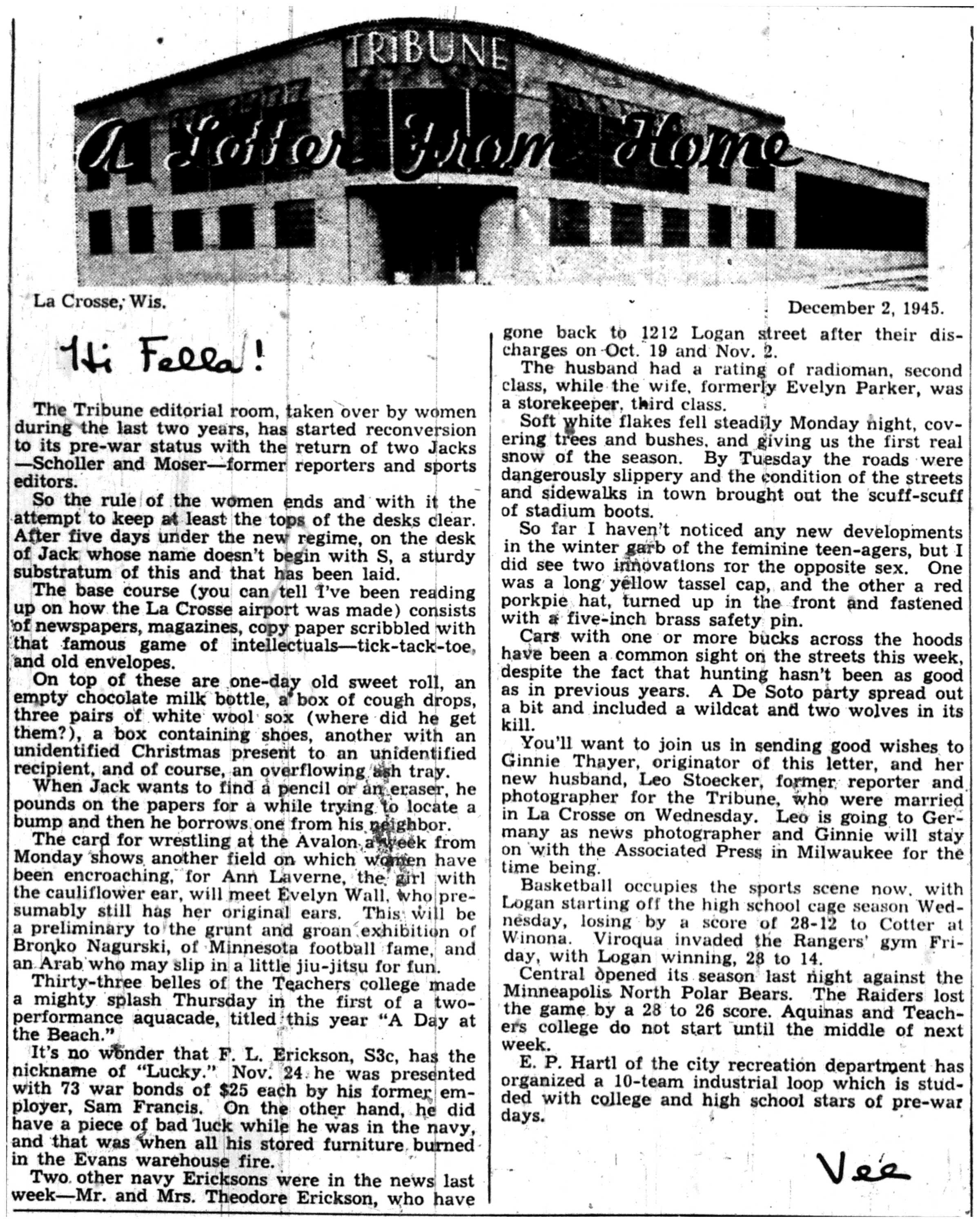 | 1945-12-10 | La Crosse Tribune p8 | |