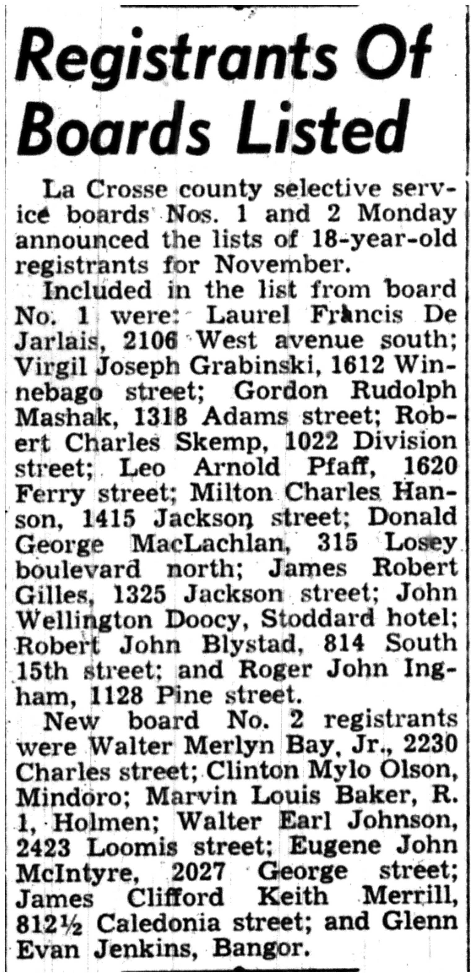 | 1945-12-1 | La Crosse Tribune p7 |