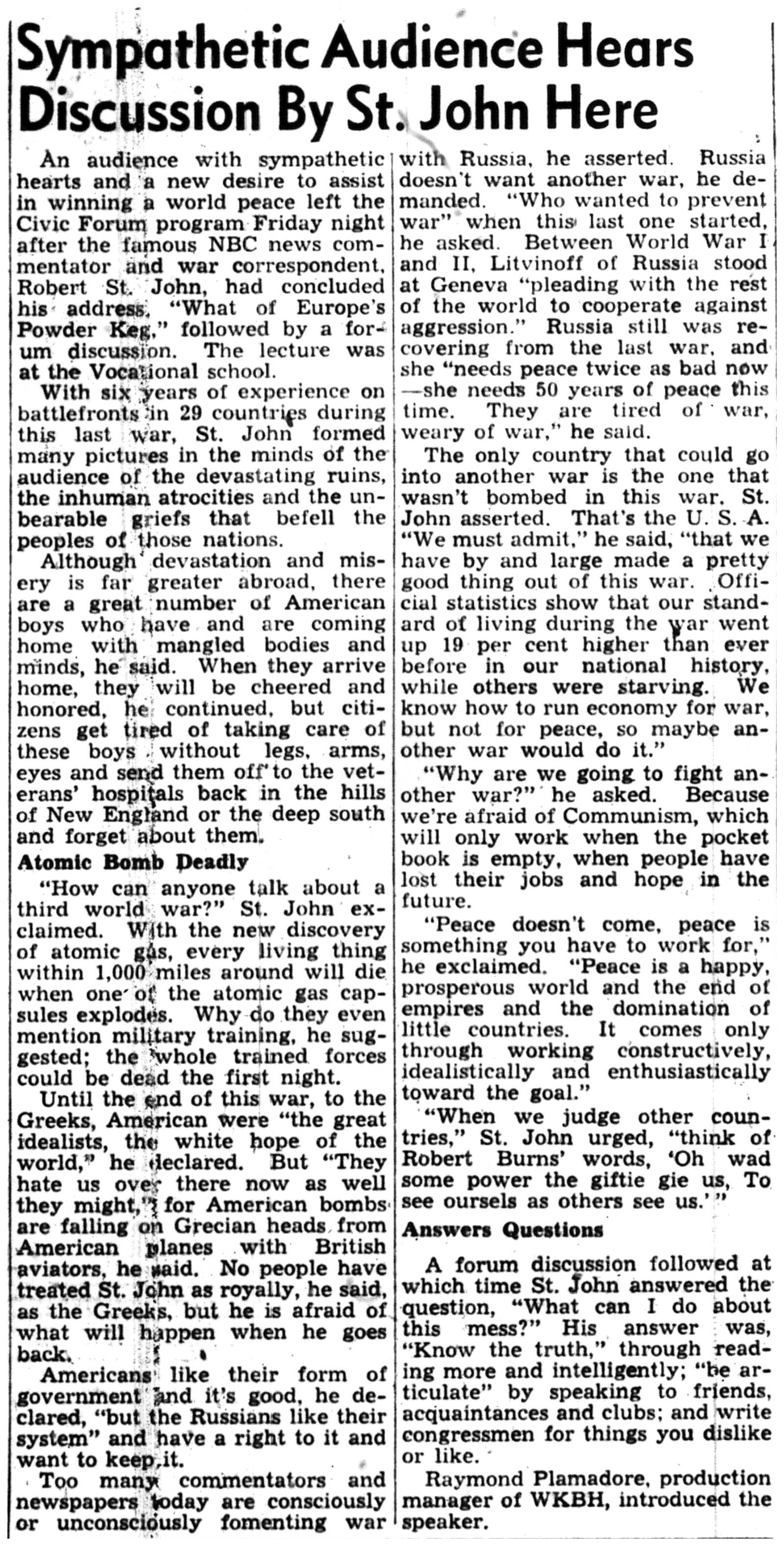 | 1945-12-6 | Non-Pareil Journal p5 | |