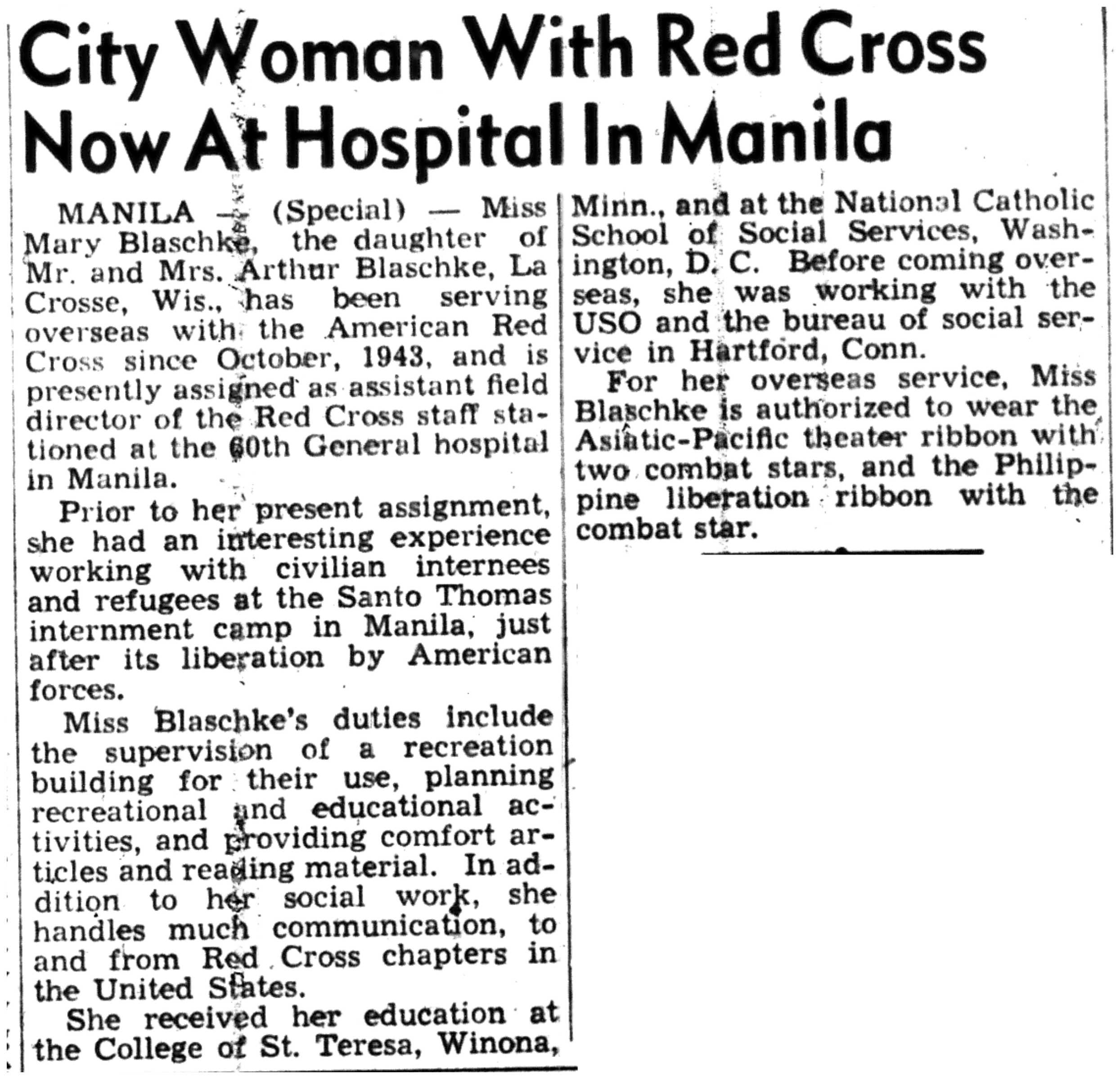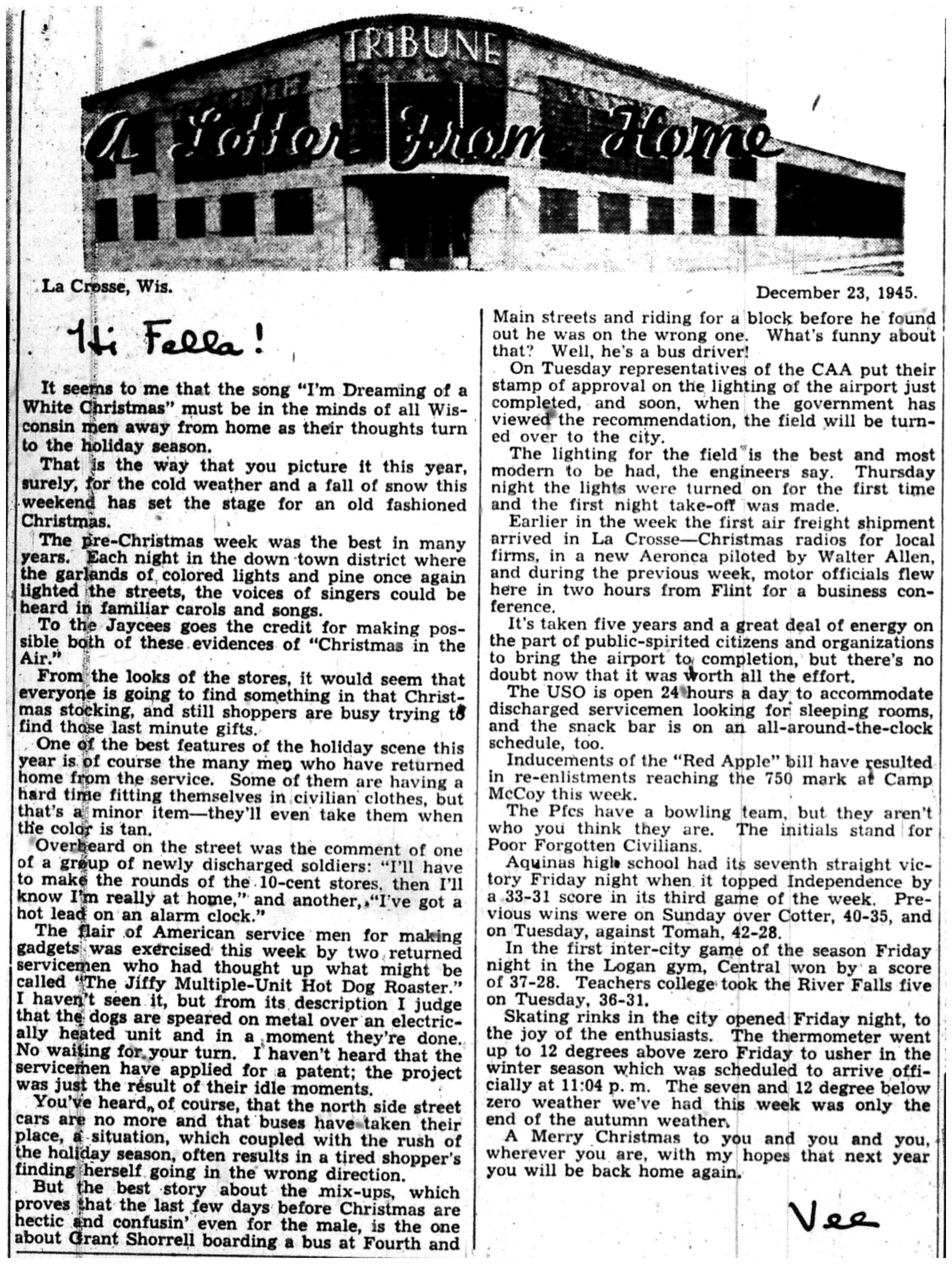 | 1945-12-24 | La Crosse Tribune p10 | |