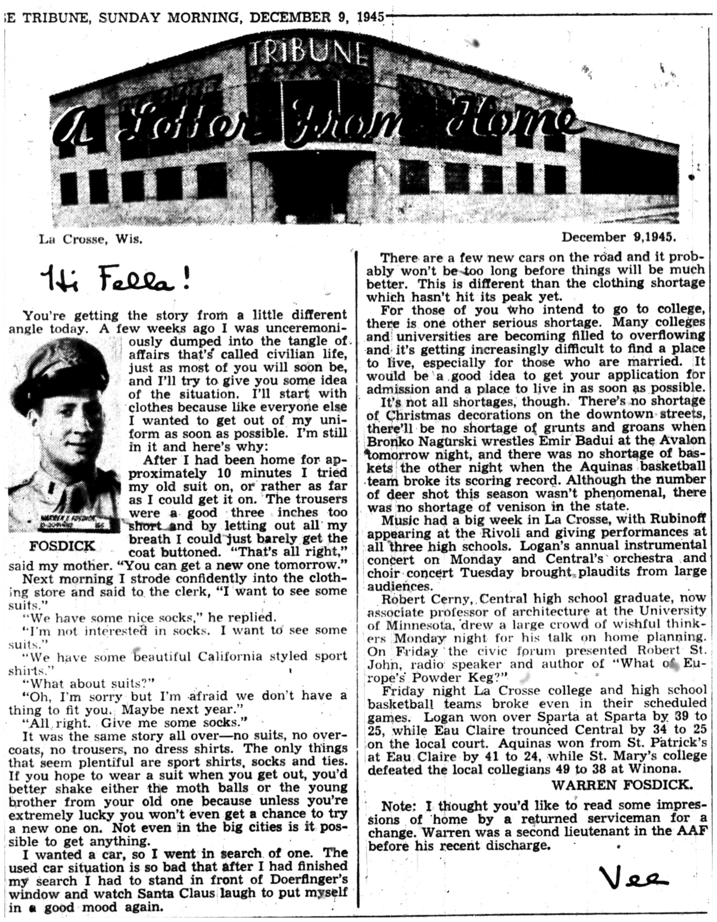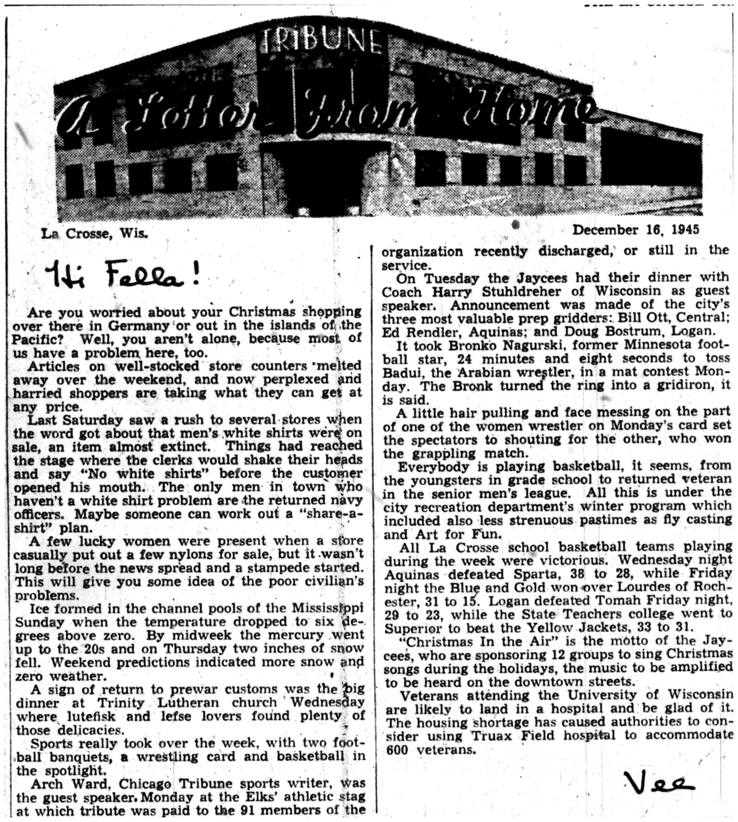 | 1945-12-10 | La Crosse Tribune p5 | |