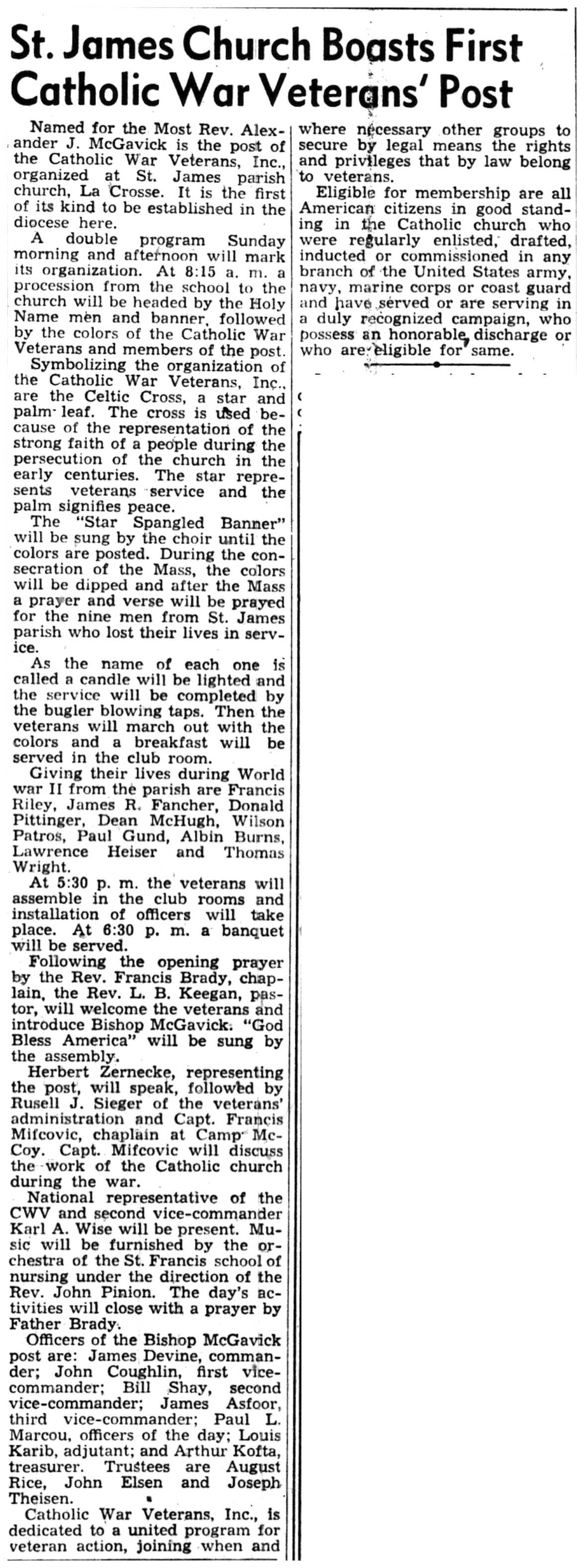 | 1945-12-13 | La Crosse Tribune p10 | |