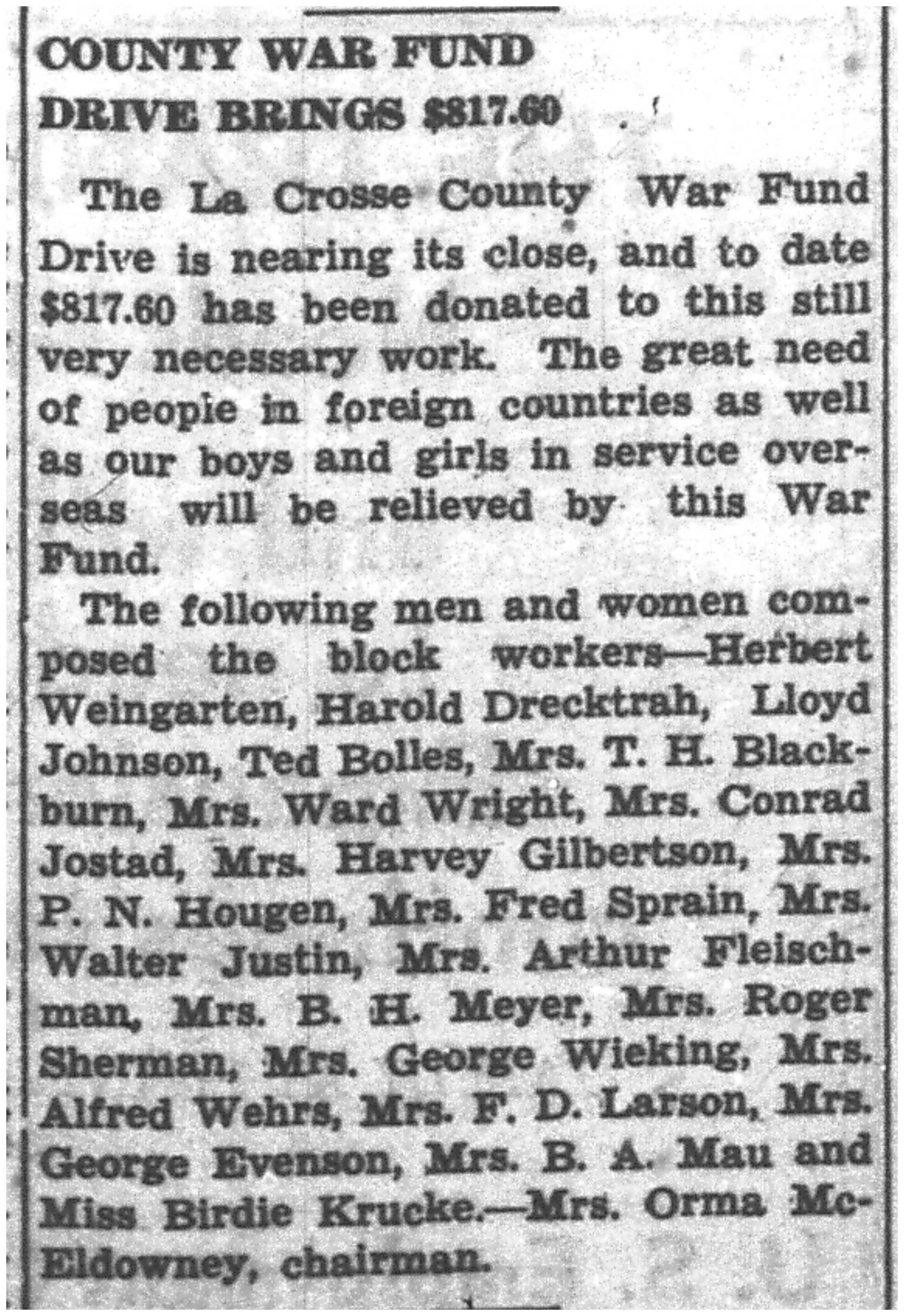 | 1945-12-17 | La Crosse Tribune p5 | |