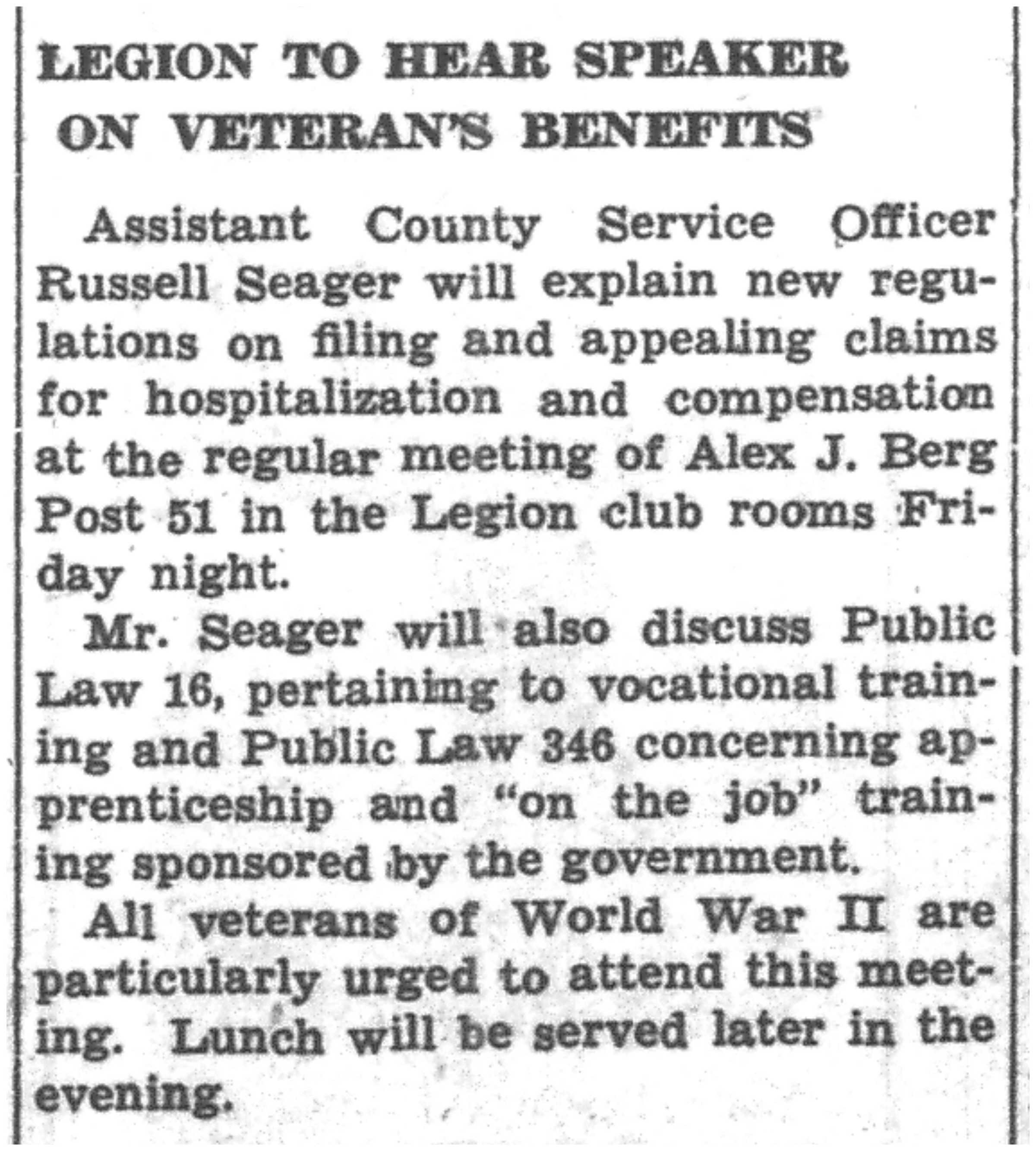 | 1945-12-27 | Non-Pareil Journal p5 | |