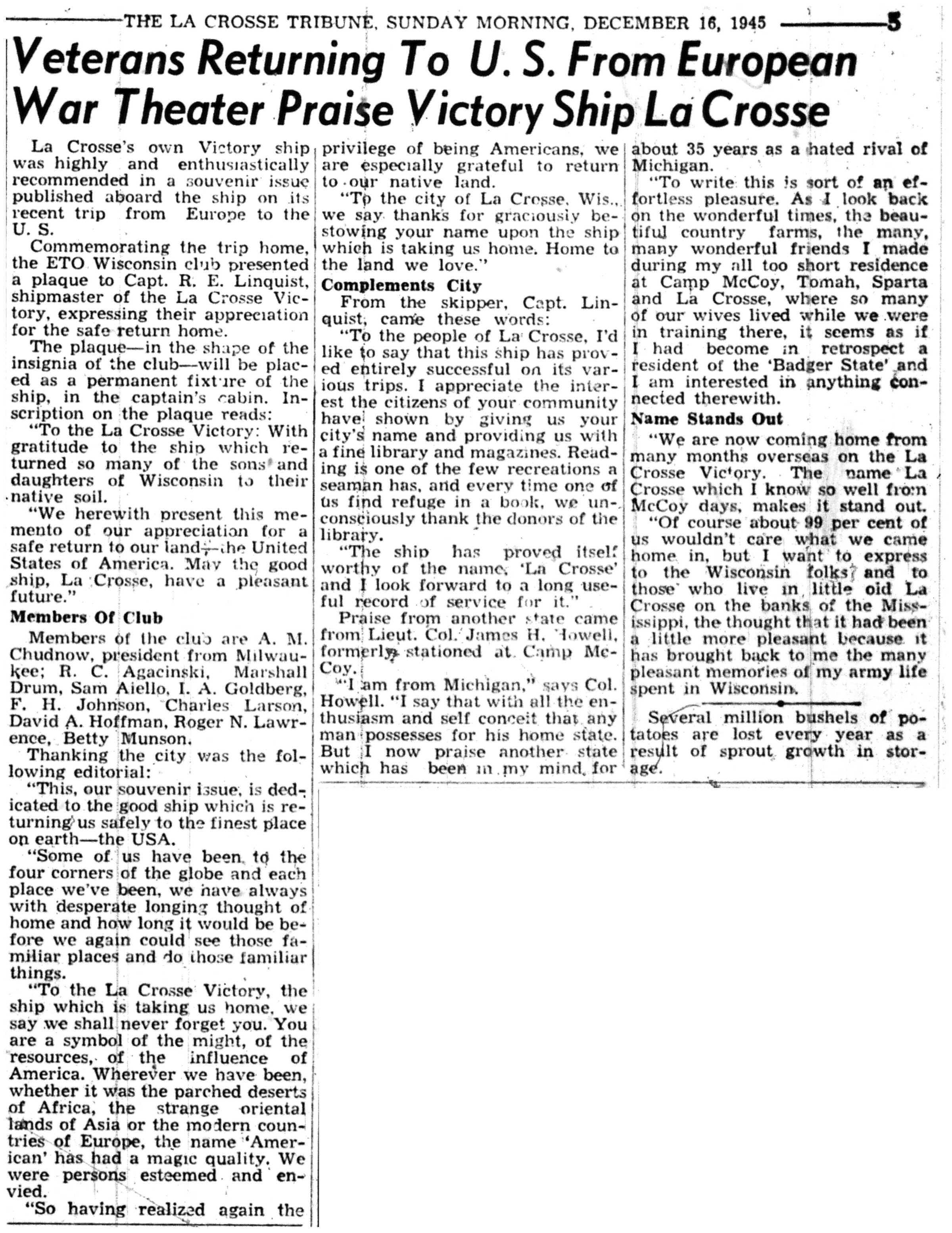 | 1945-12-5 | La Crosse Tribune p6 | |