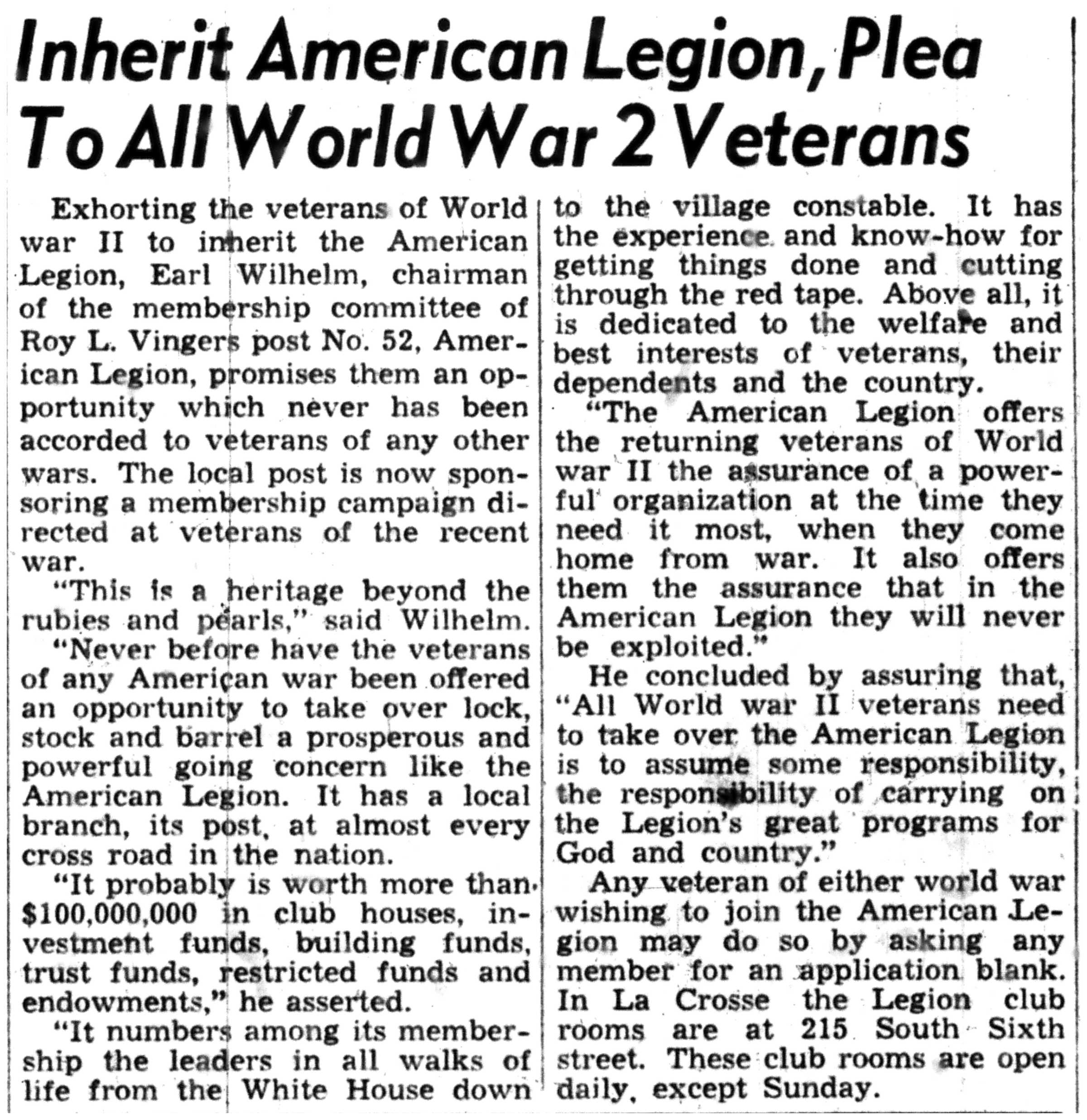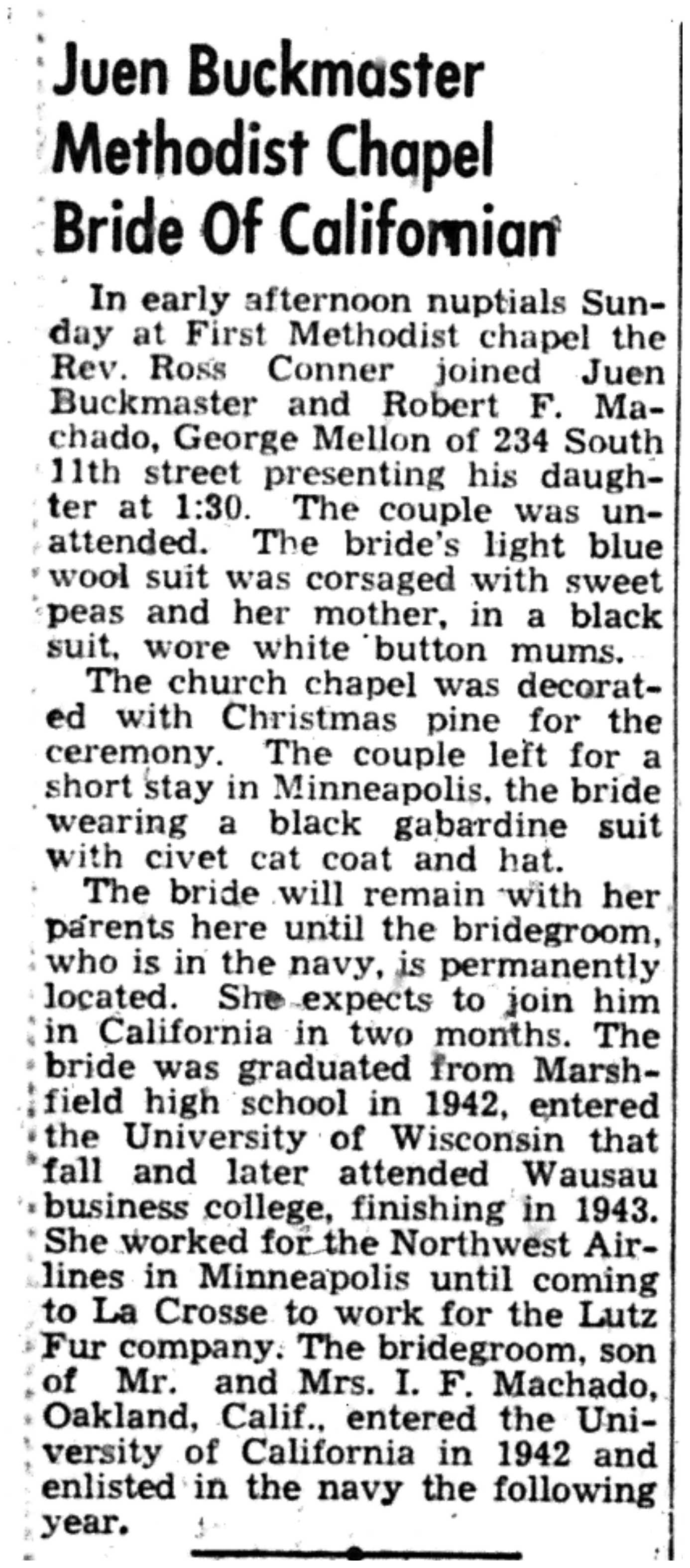 | 1945-12-14 | La Crosse Tribune p10 | |