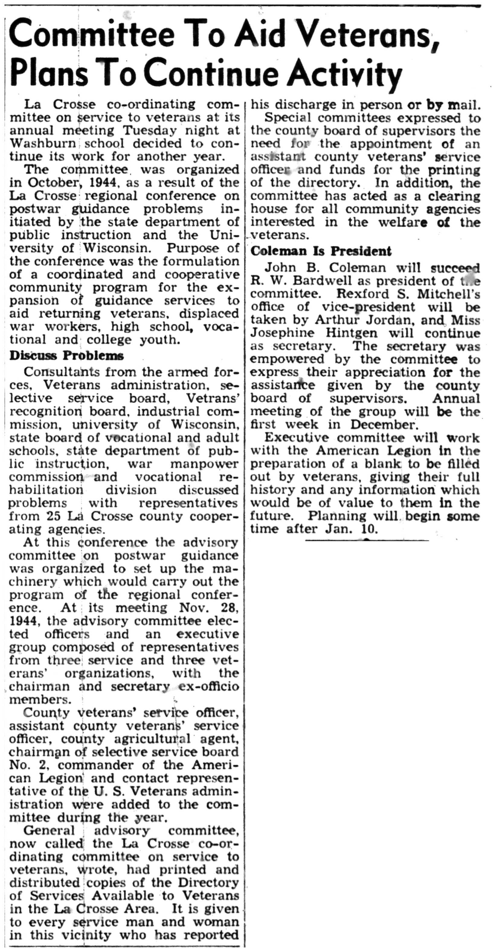 | 1945-12-10 | La Crosse Tribune p3 | |