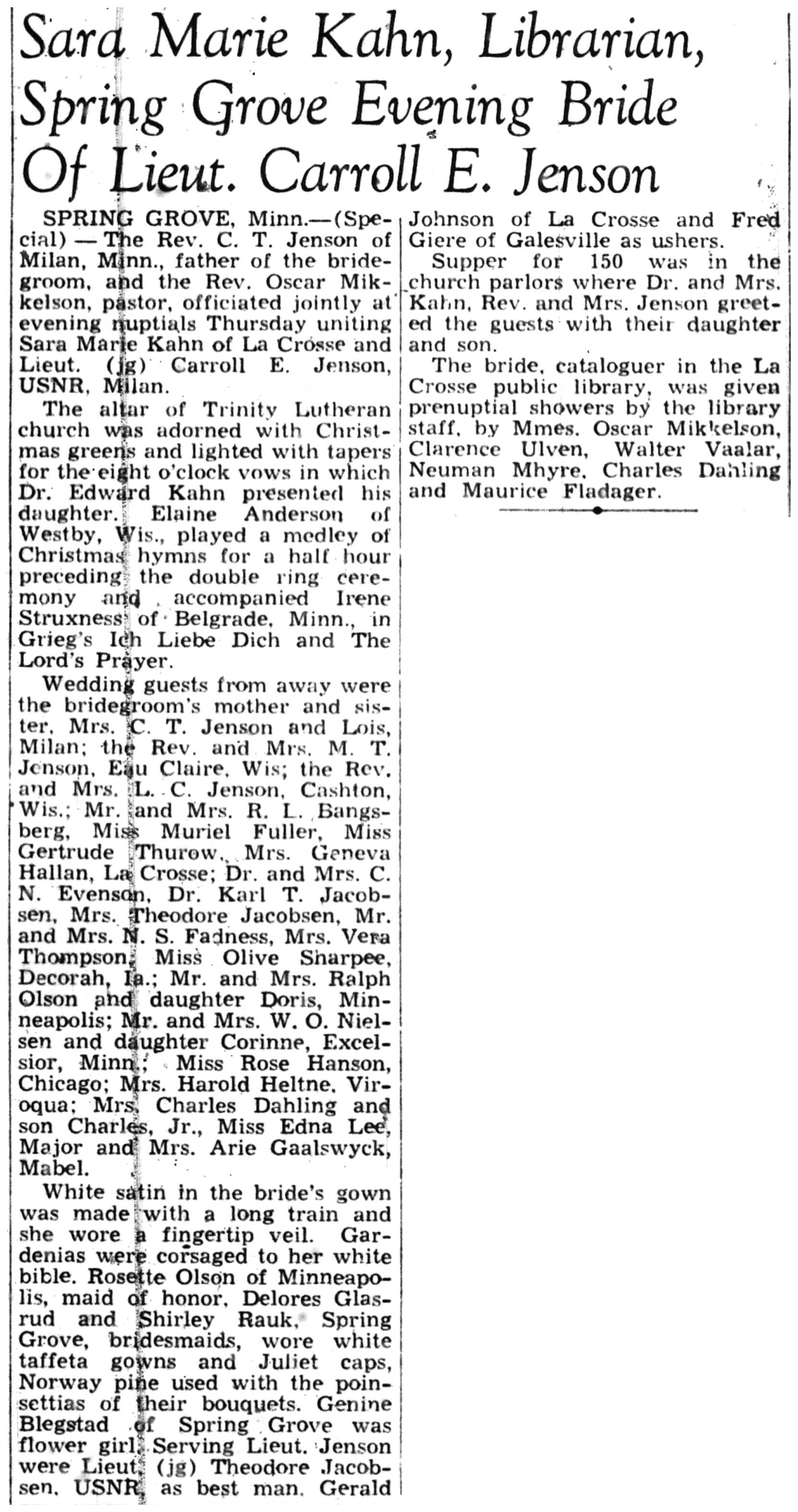 | 1945-12-16 | La Crosse Tribune p12 | |