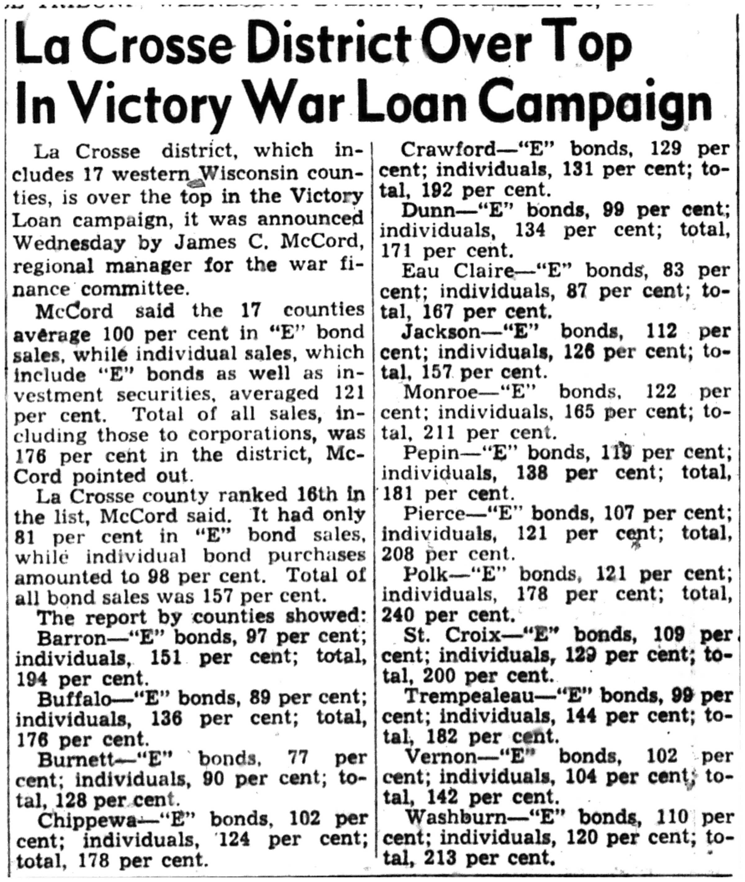 | 1945-12-4 | La Crosse Tribune p7 | |