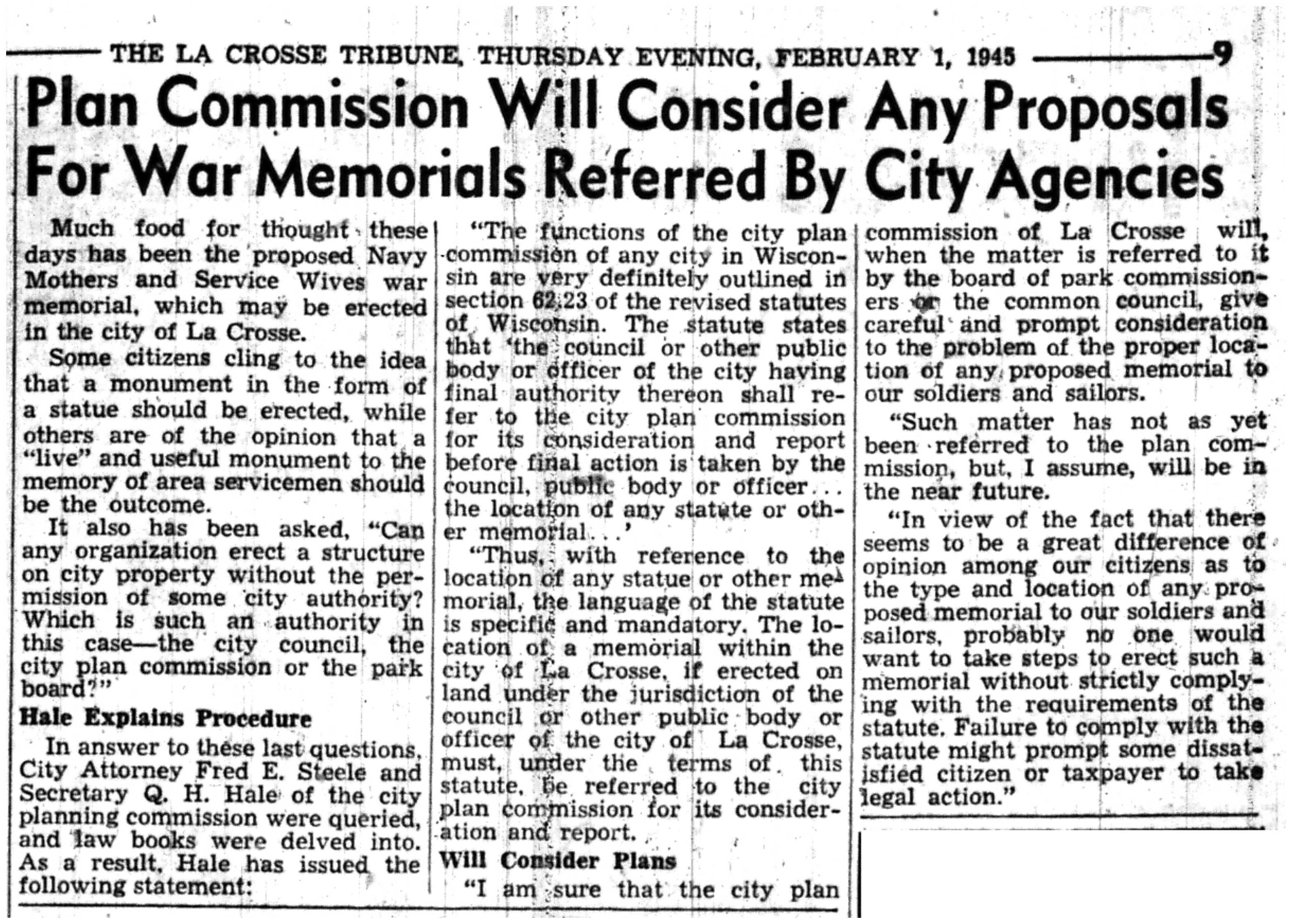 | 1945-2-4 | La Crosse Tribune p3 | |