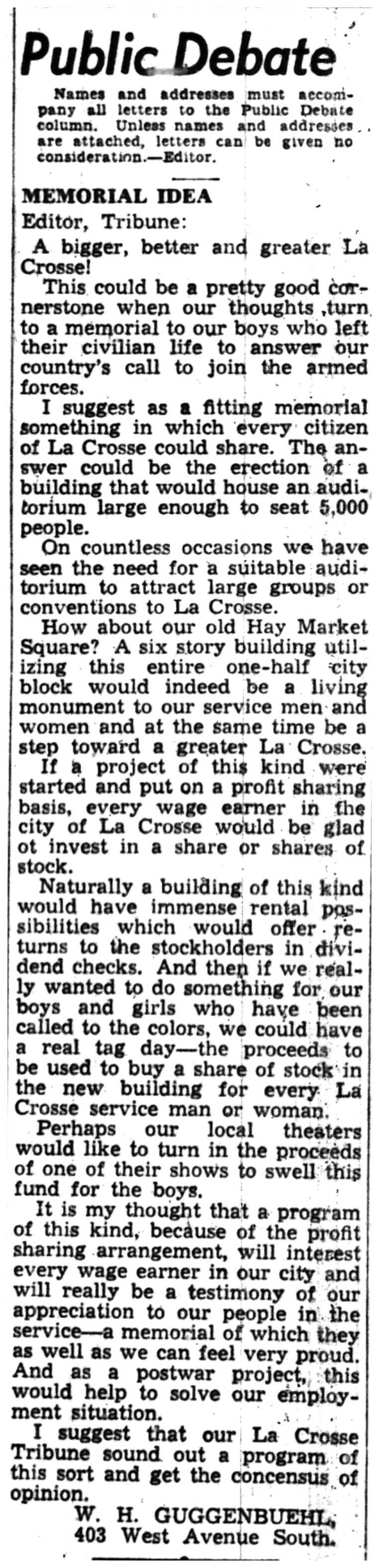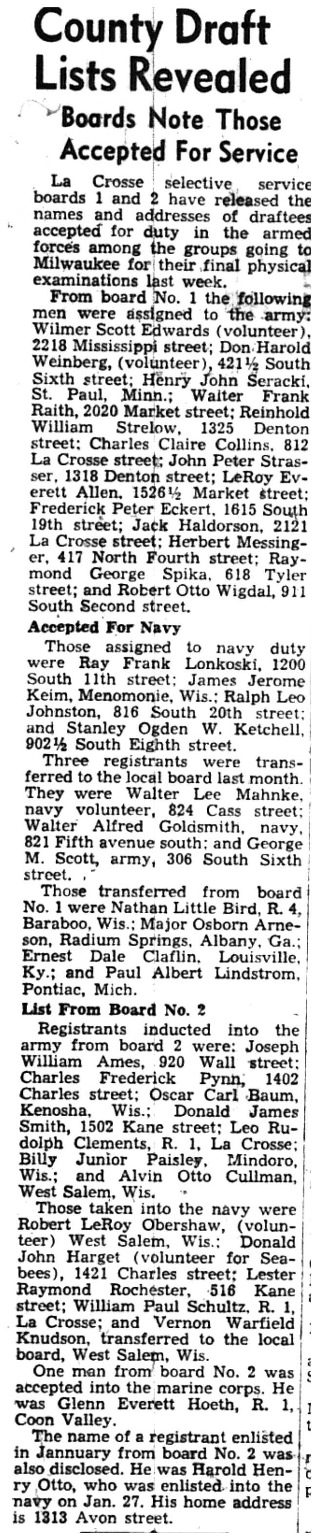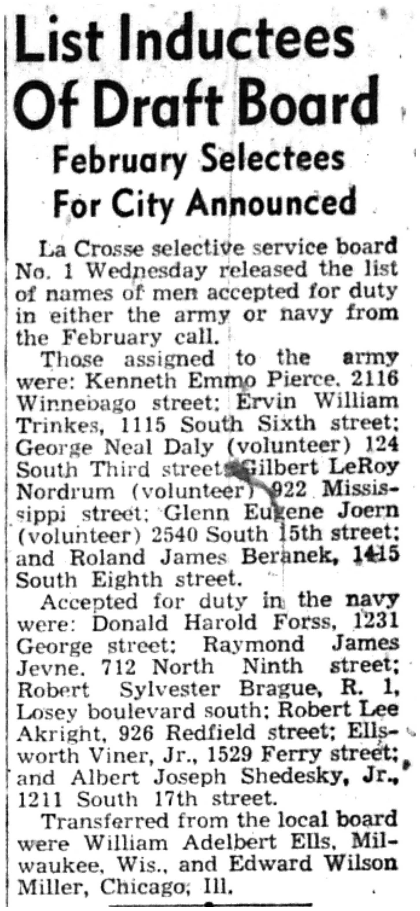| 1945-2-8 | La Crosse Tribune p19 | |