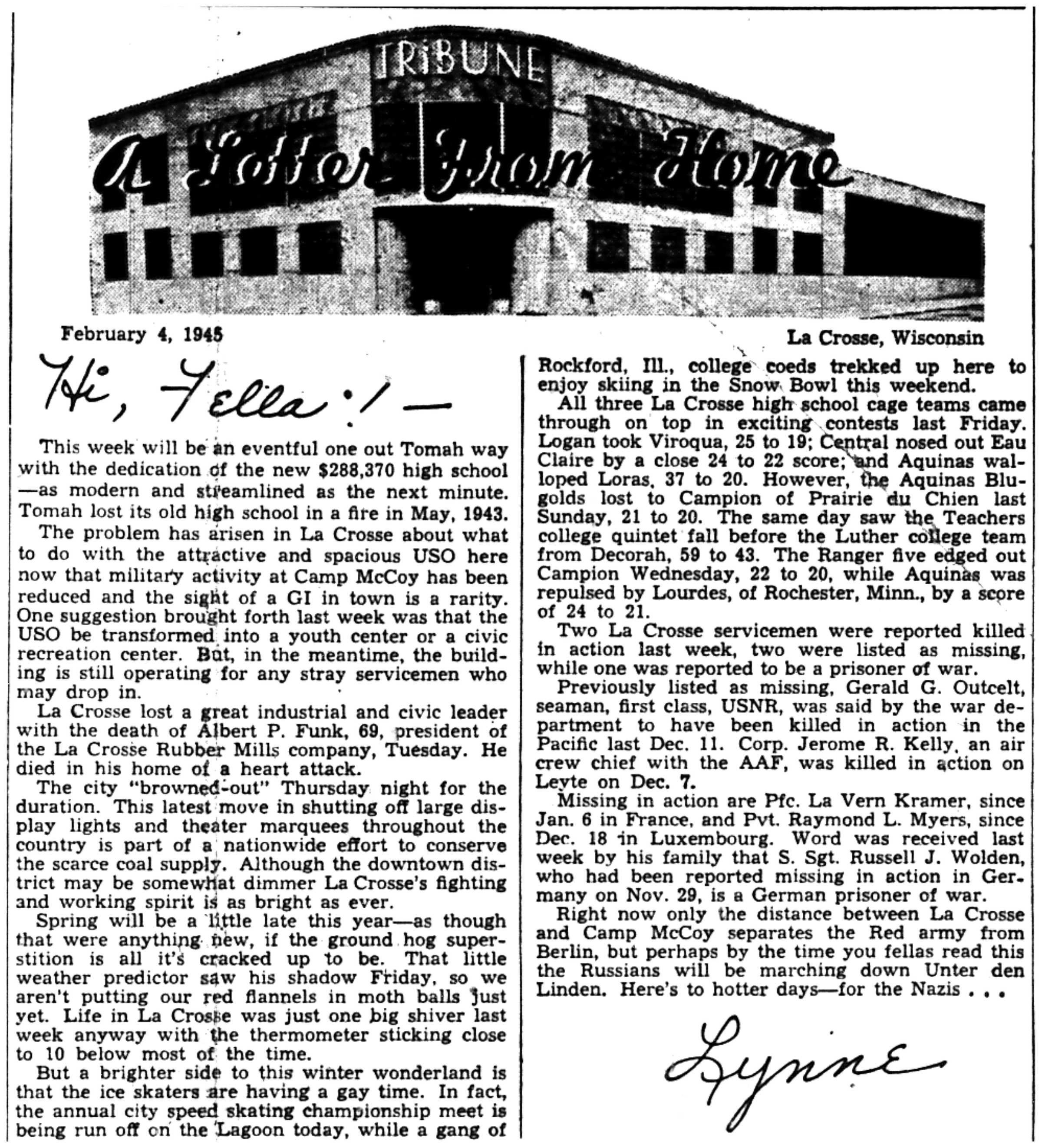 | 1945-2-6 | La Crosse Tribune p3 | |