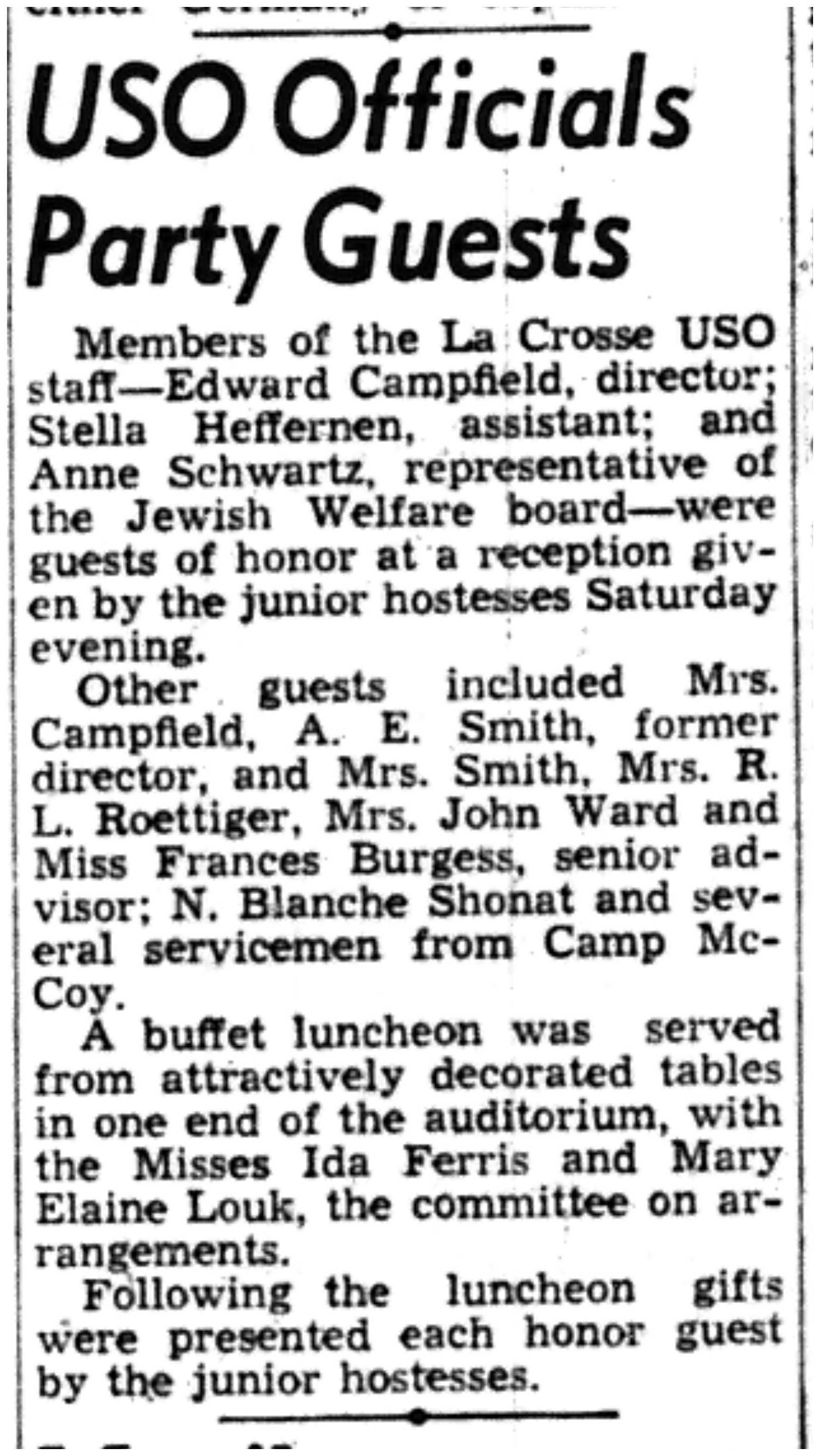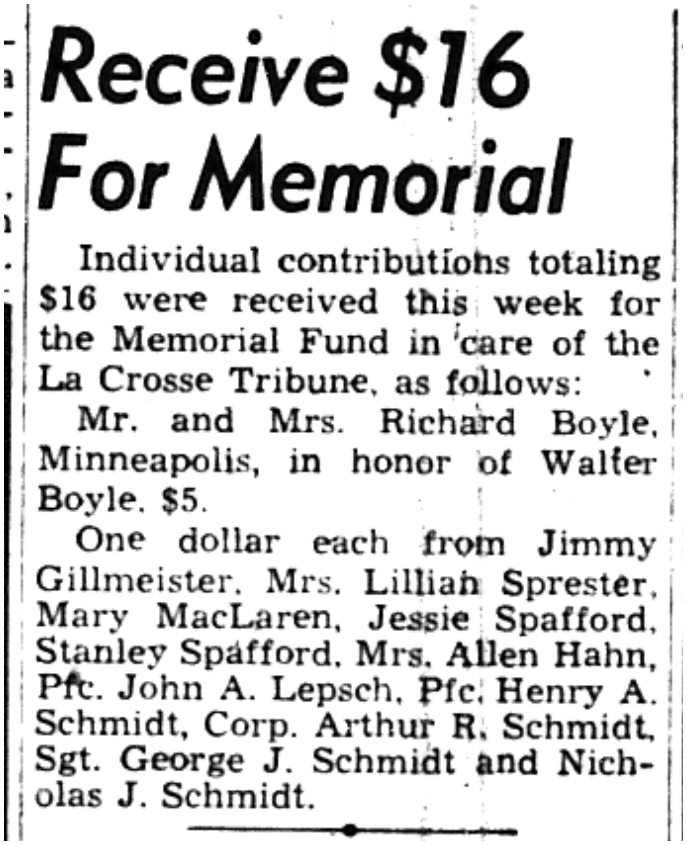 | 1945-2-6 | La Crosse Tribune p9 | |