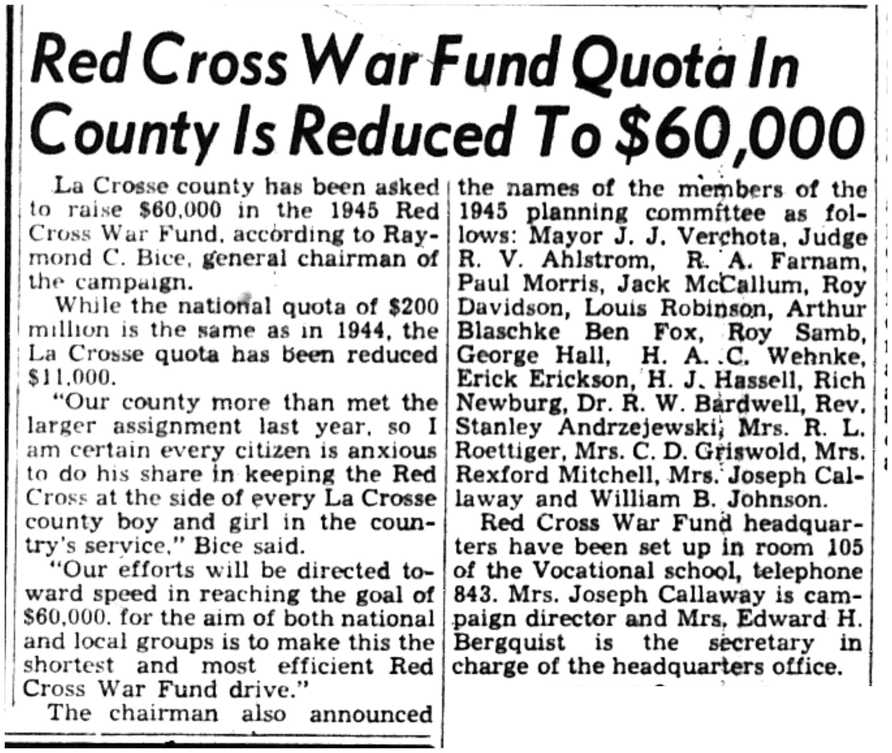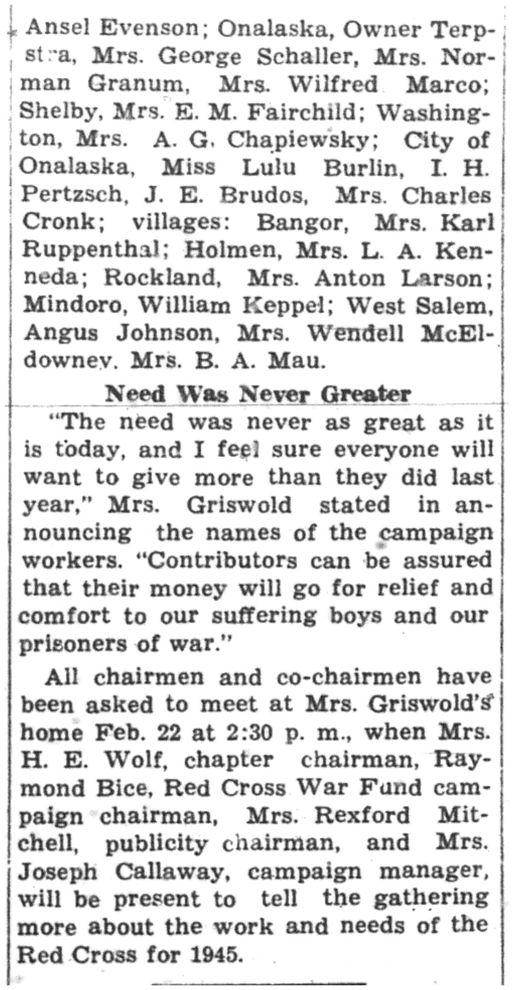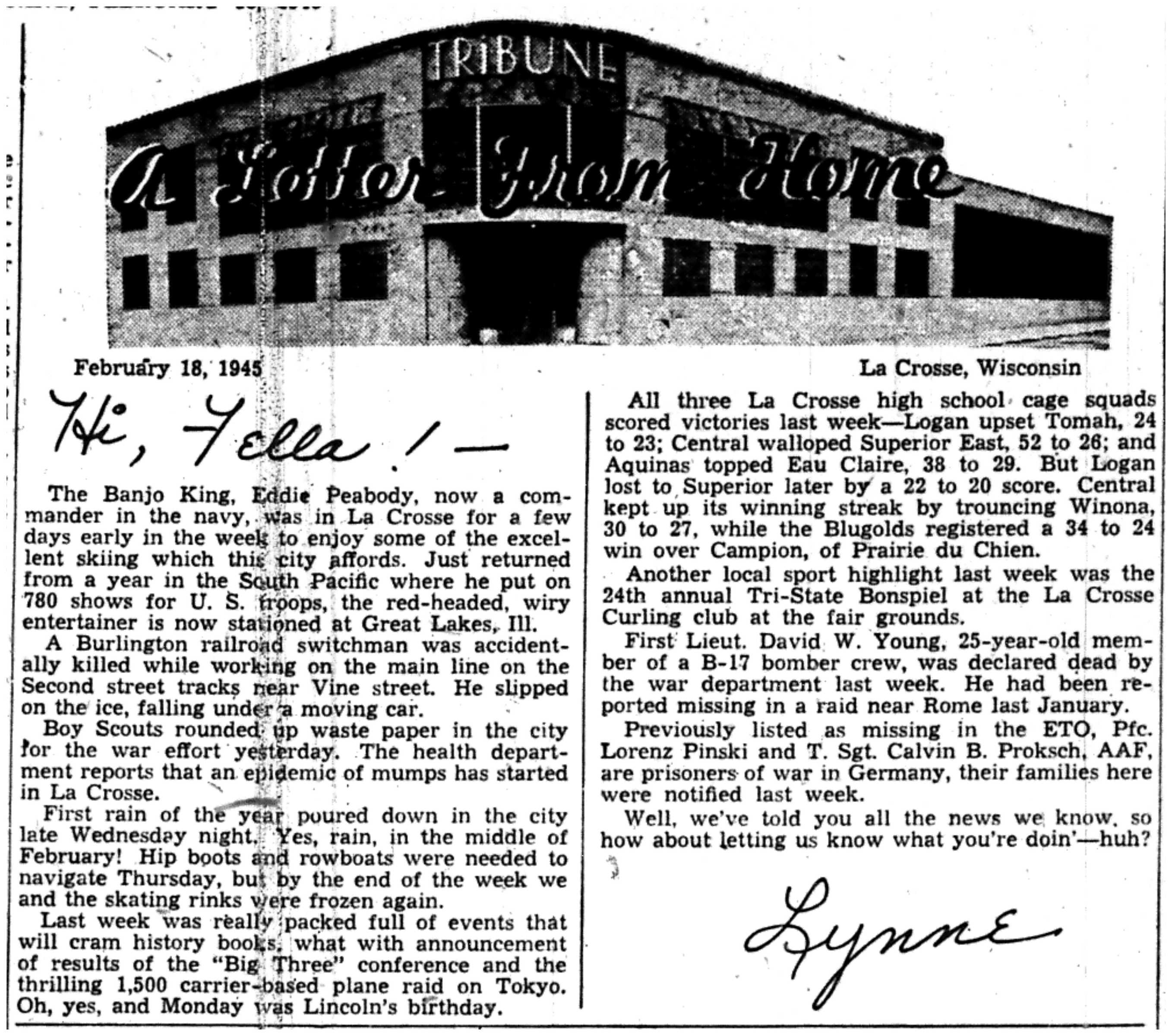 | 1945-2-28 | La Crosse Tribune p5 | |