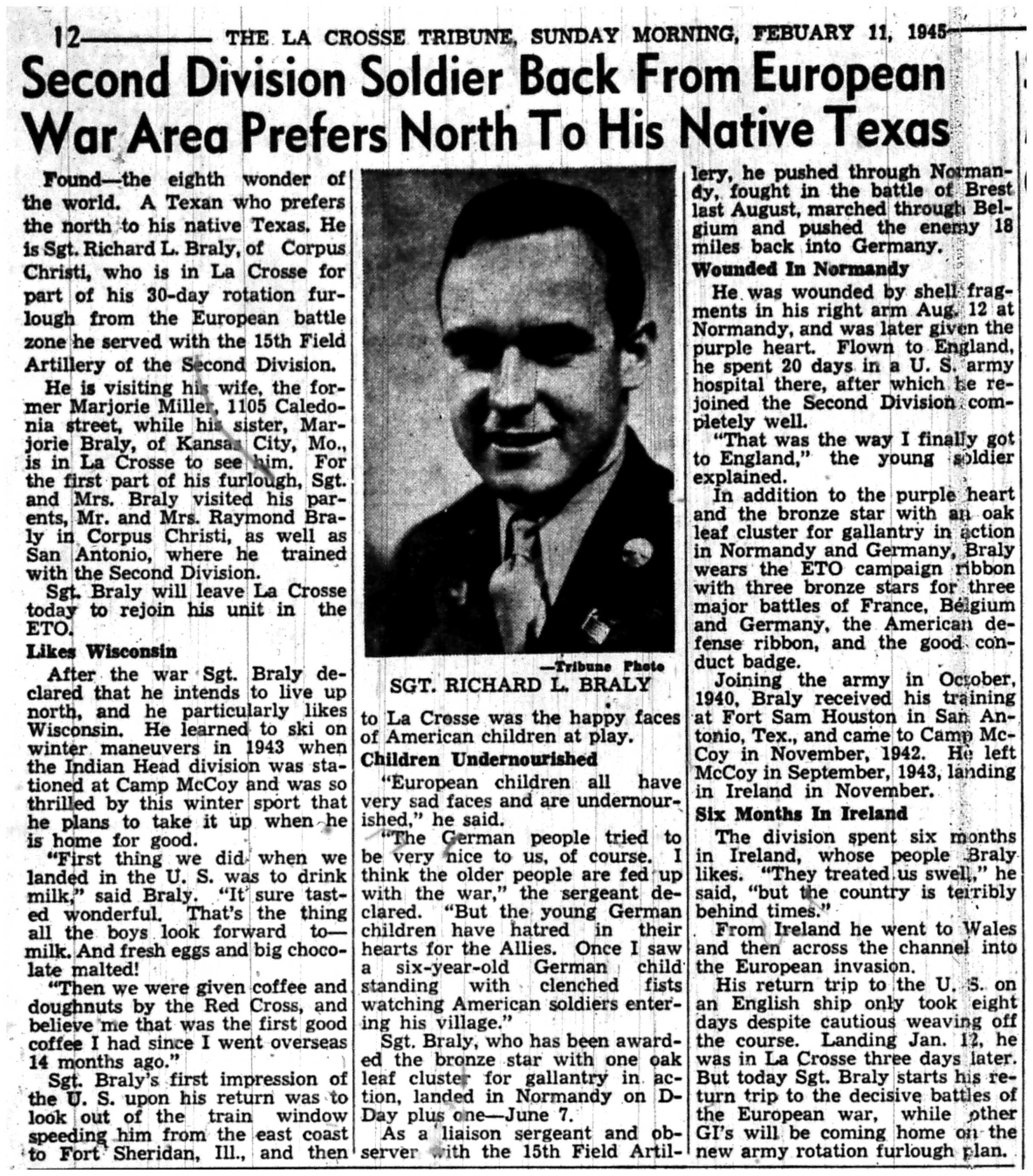 | 1945-2-8 | La Crosse Tribune p3 | |