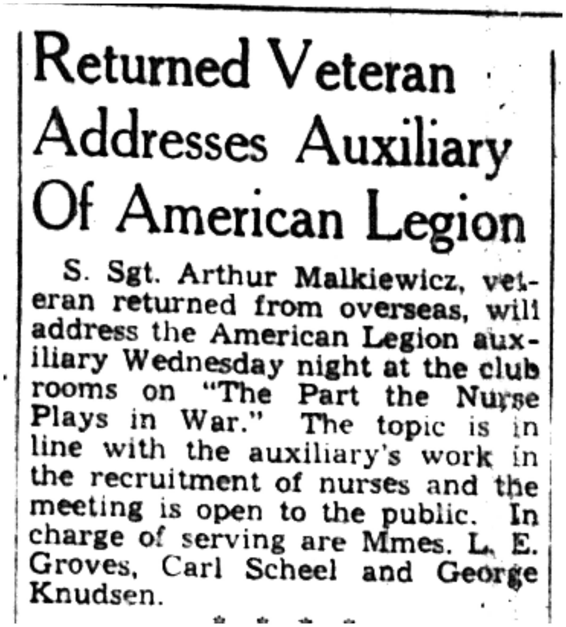 | 1945-2-7 | La Crosse Tribune p9 | |