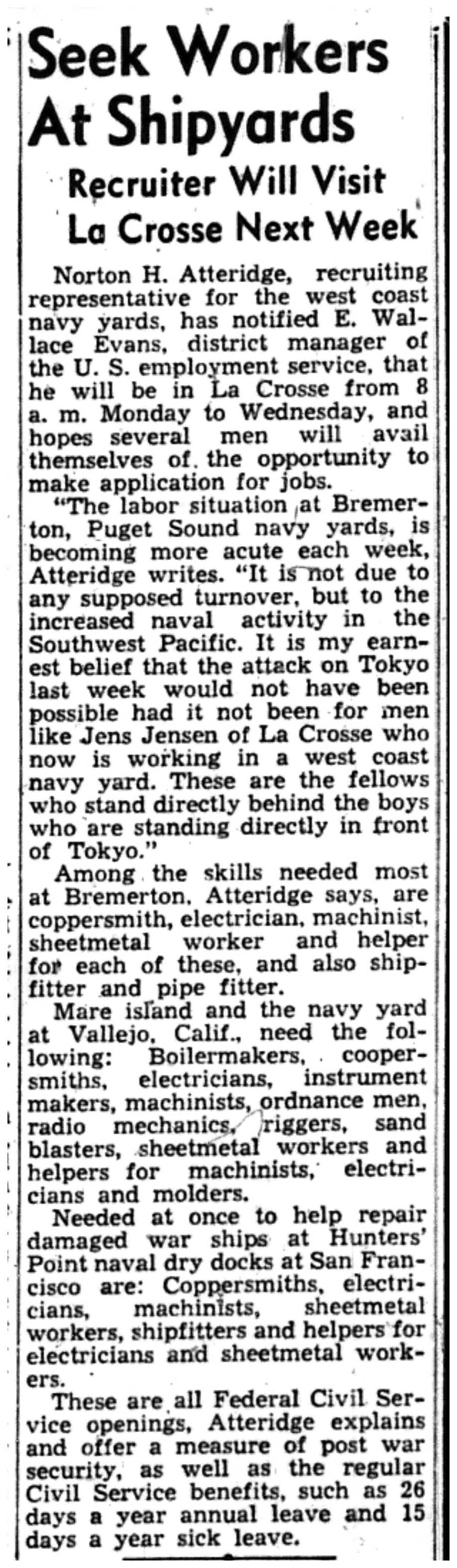 | 1945-2-17 | La Crosse Tribune p8 | |
