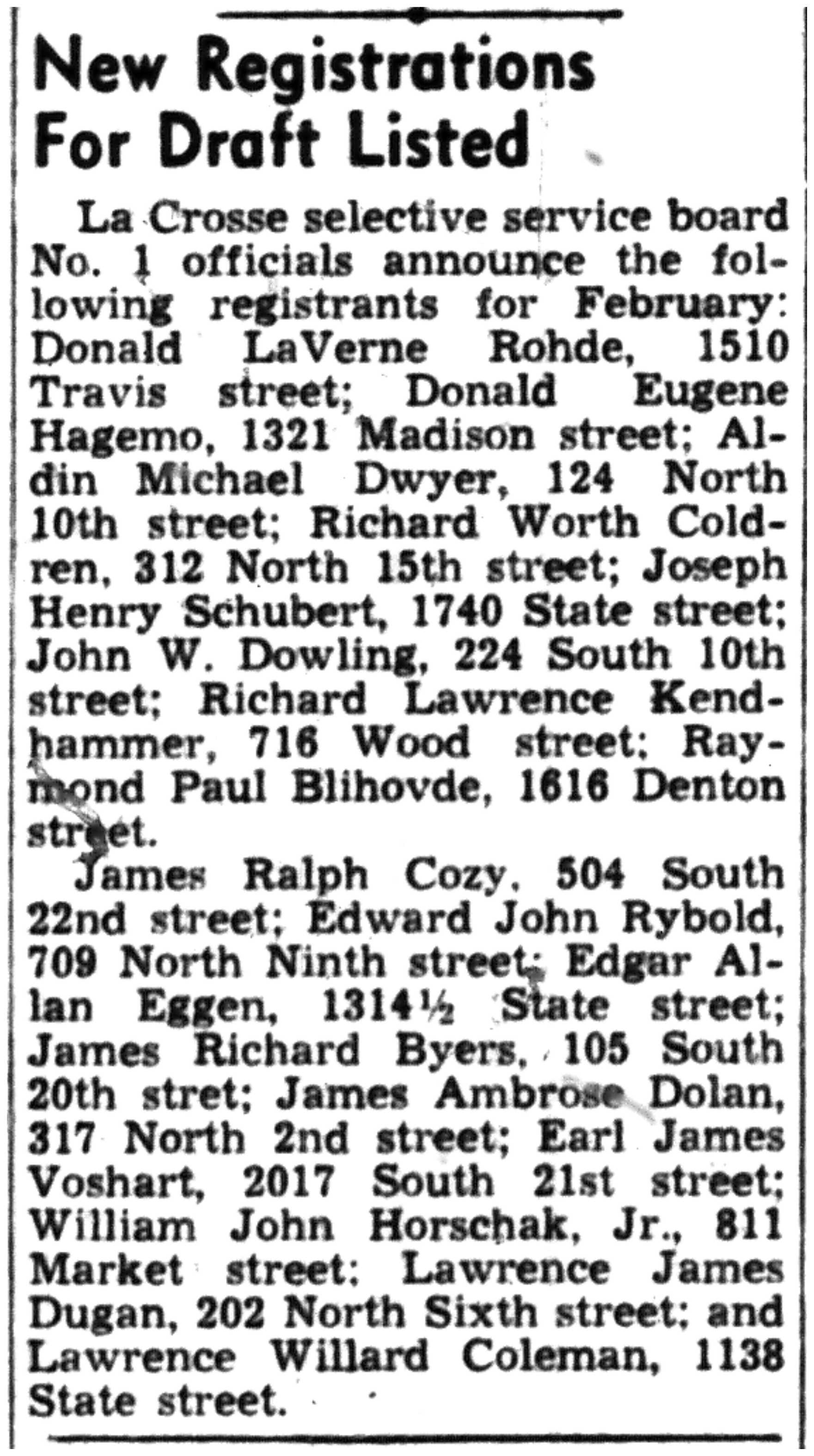 | 1945-3-31 | La Crosse Tribune p8 |