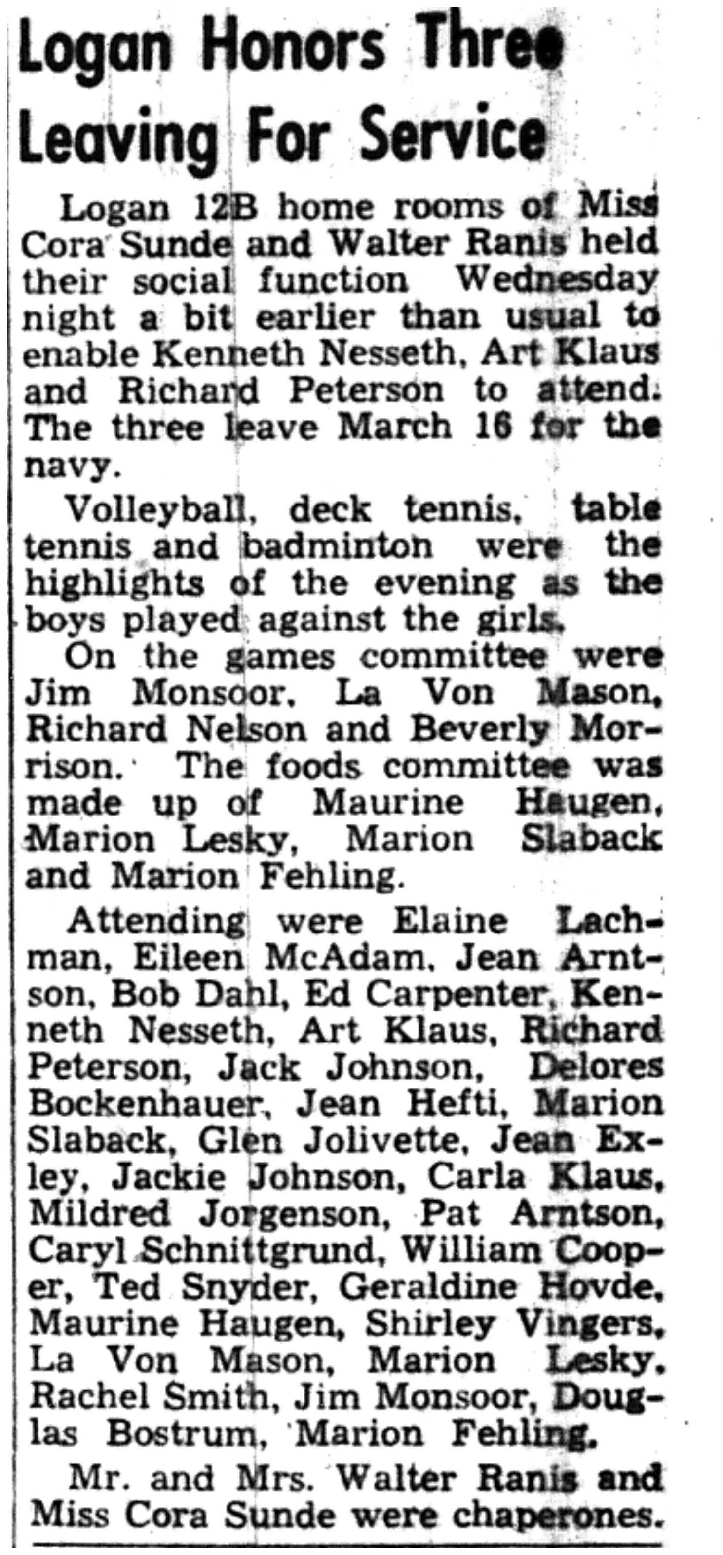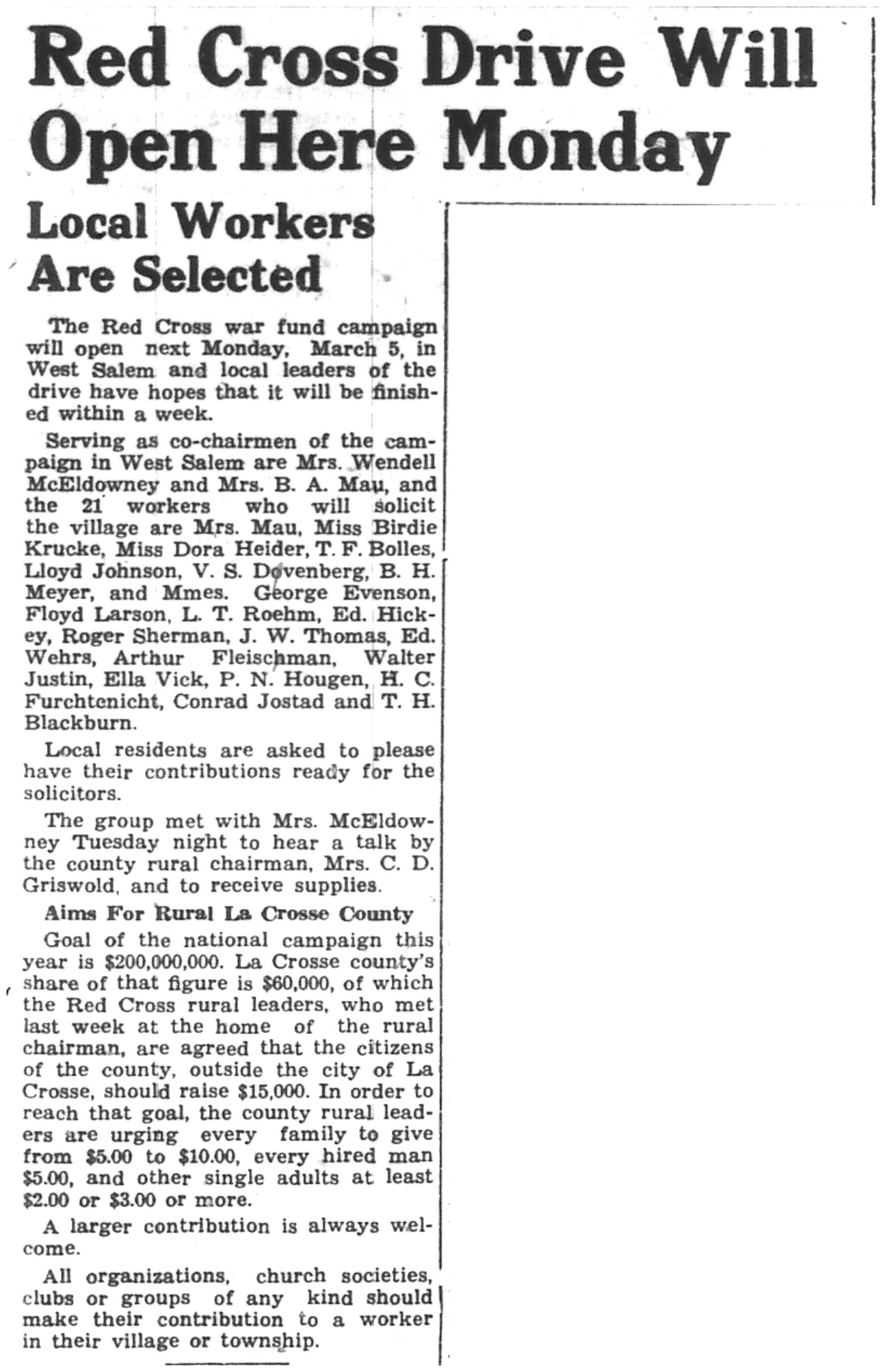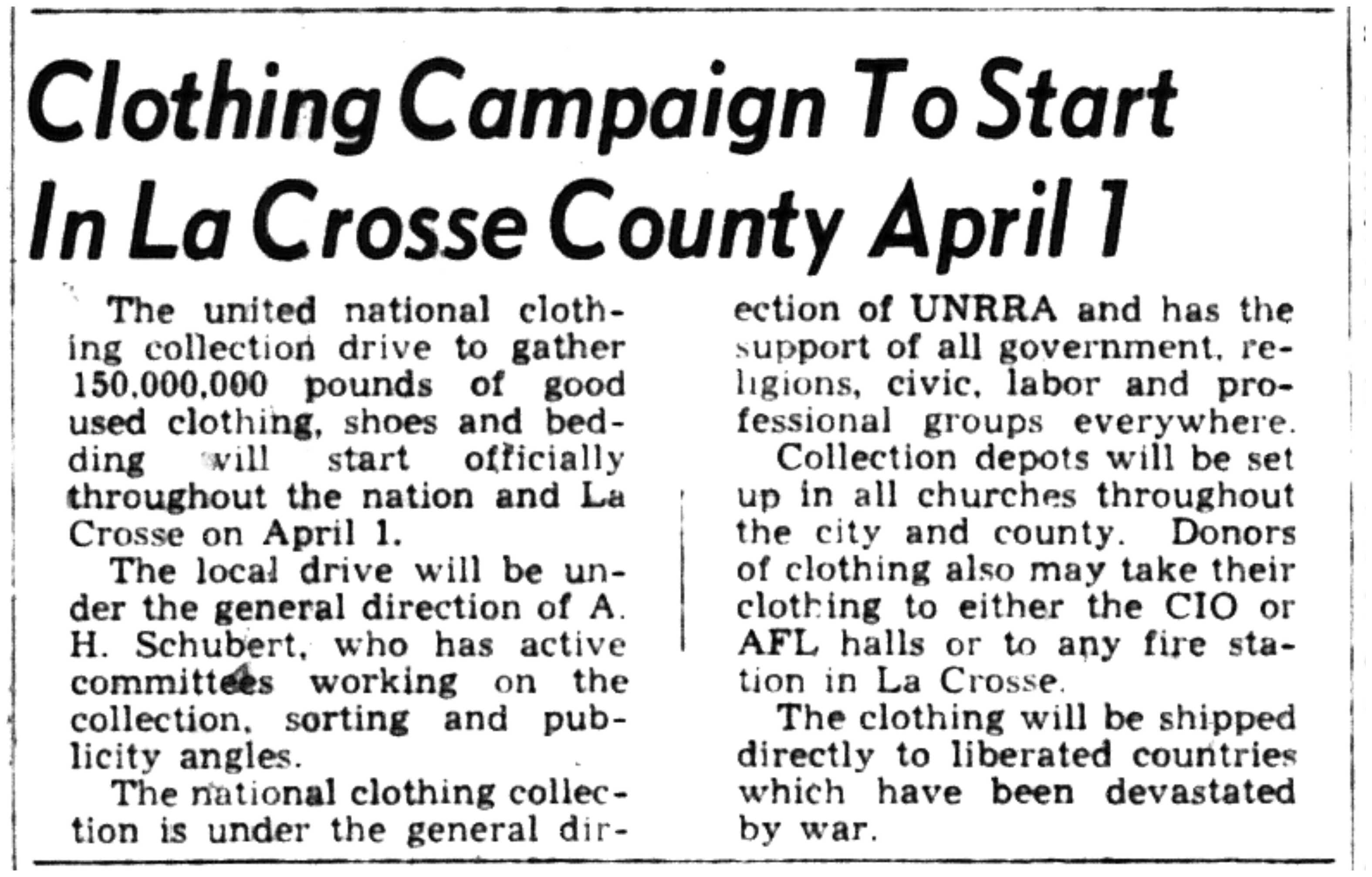 | 1945-3-1 | La Crosse Tribune p9 | |