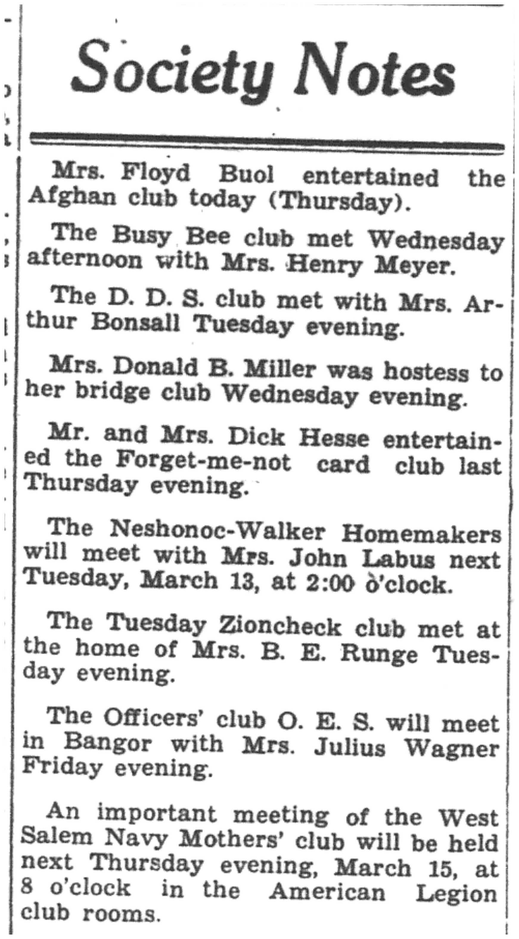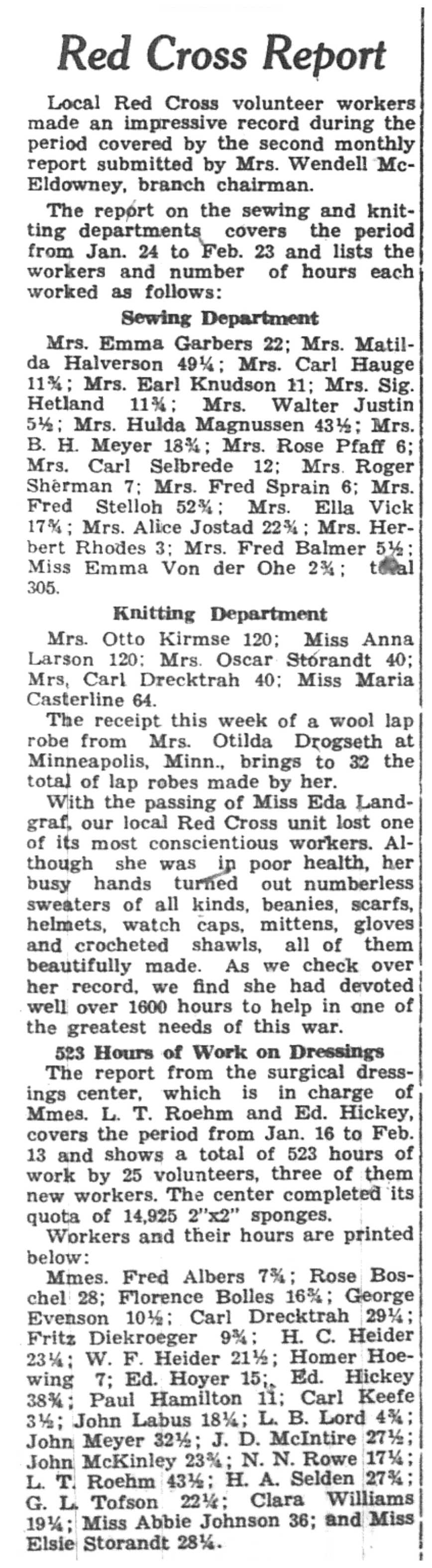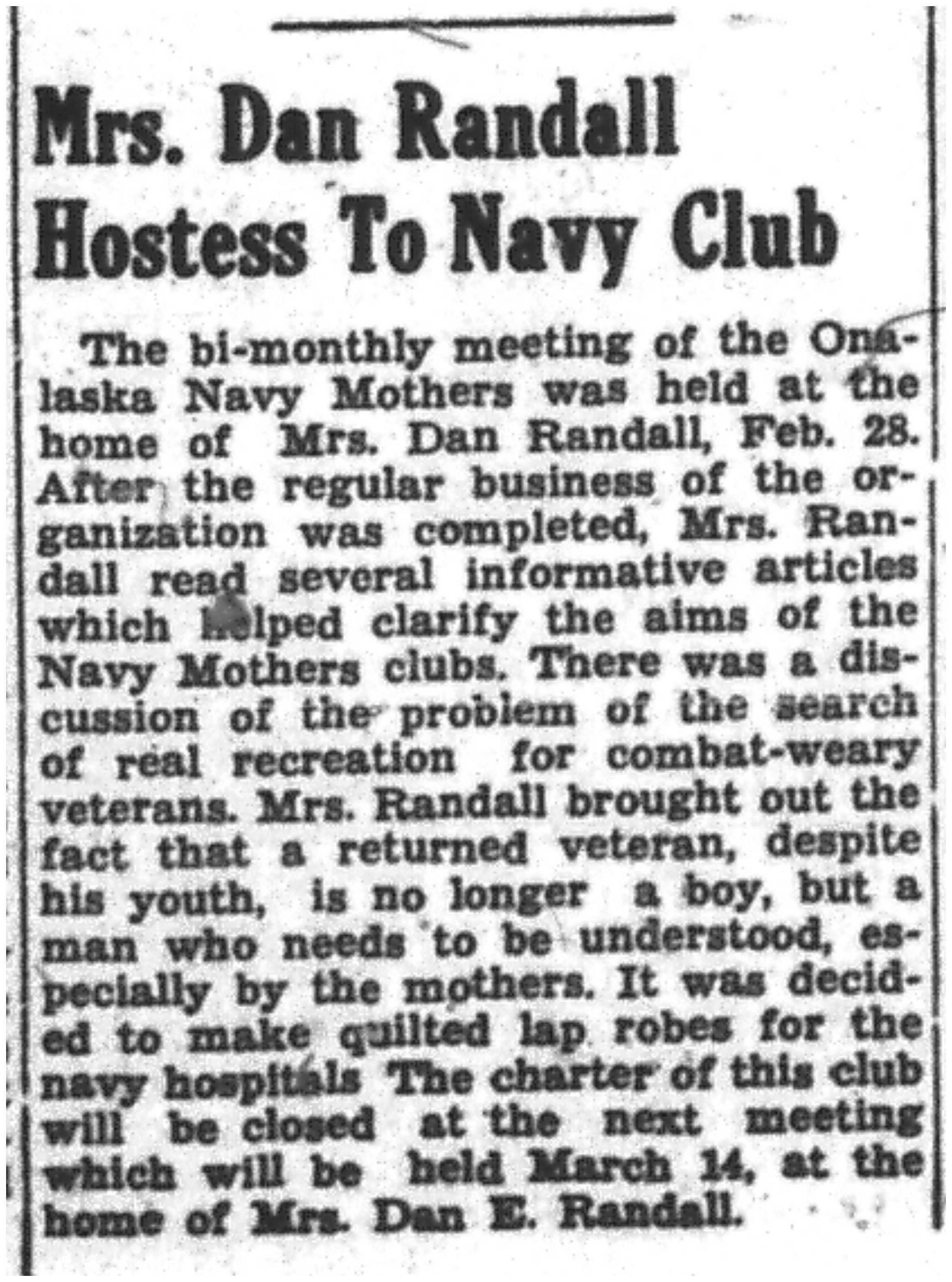 | 1945-3-1 | La Crosse Tribune p9 | |