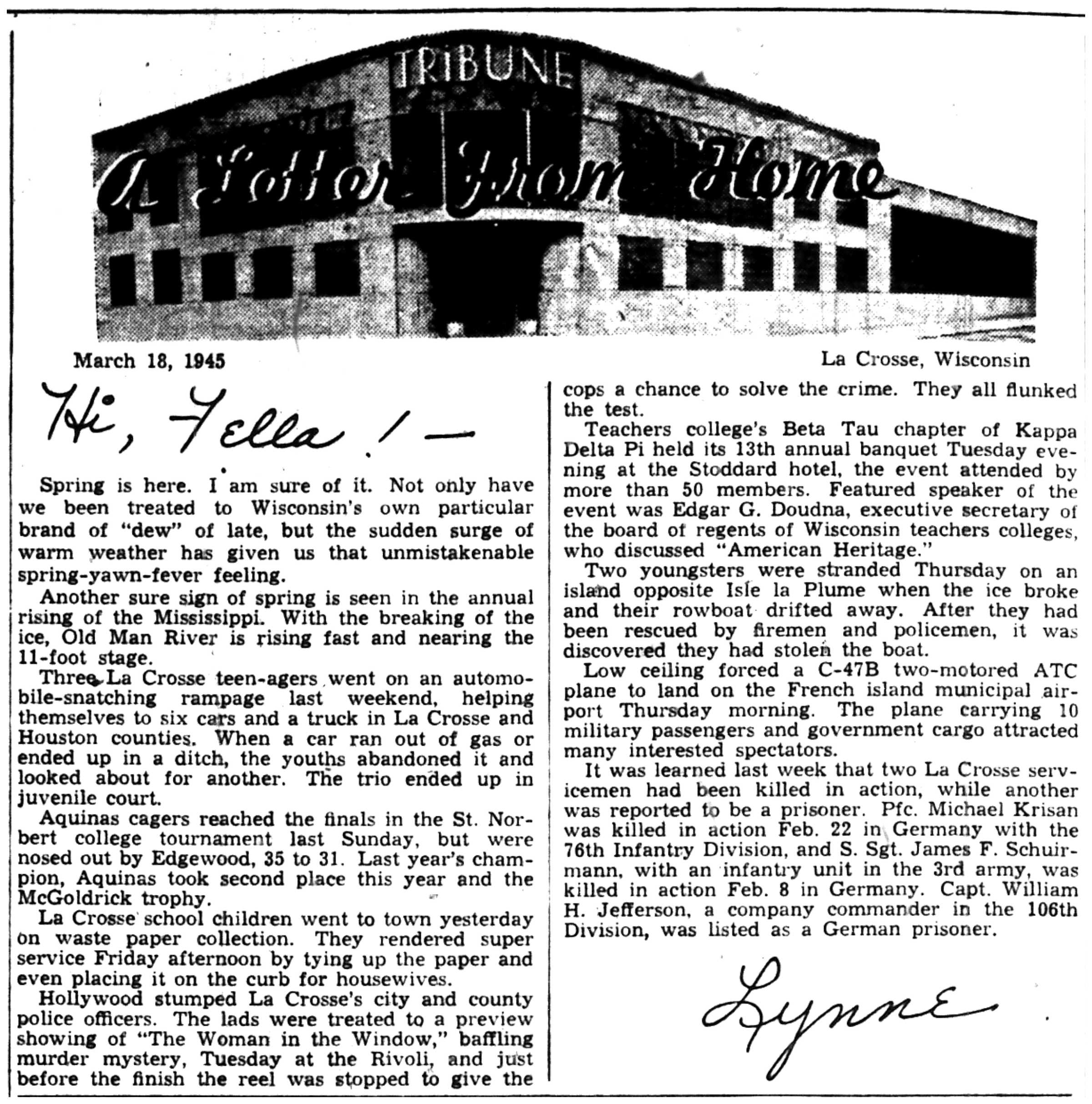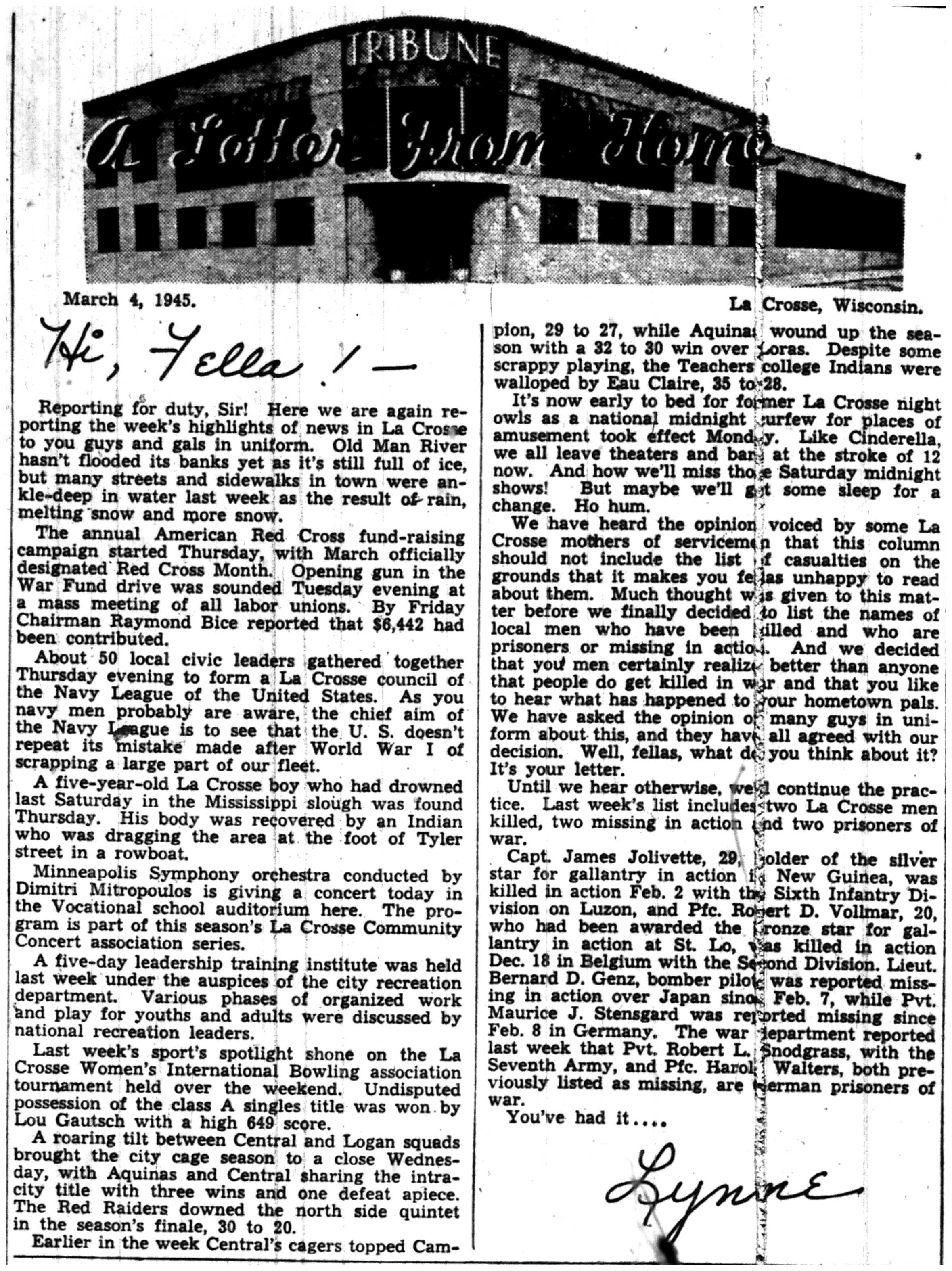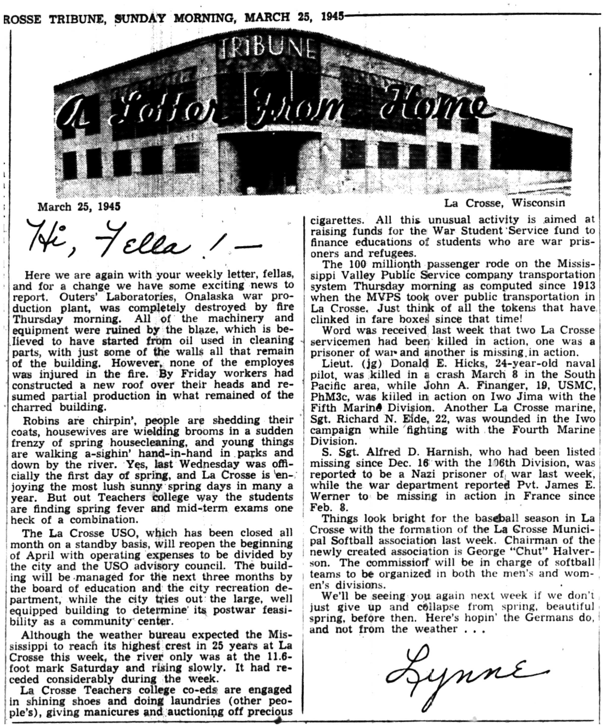 | 1945-3-25 | La Crosse Tribune p5 | |