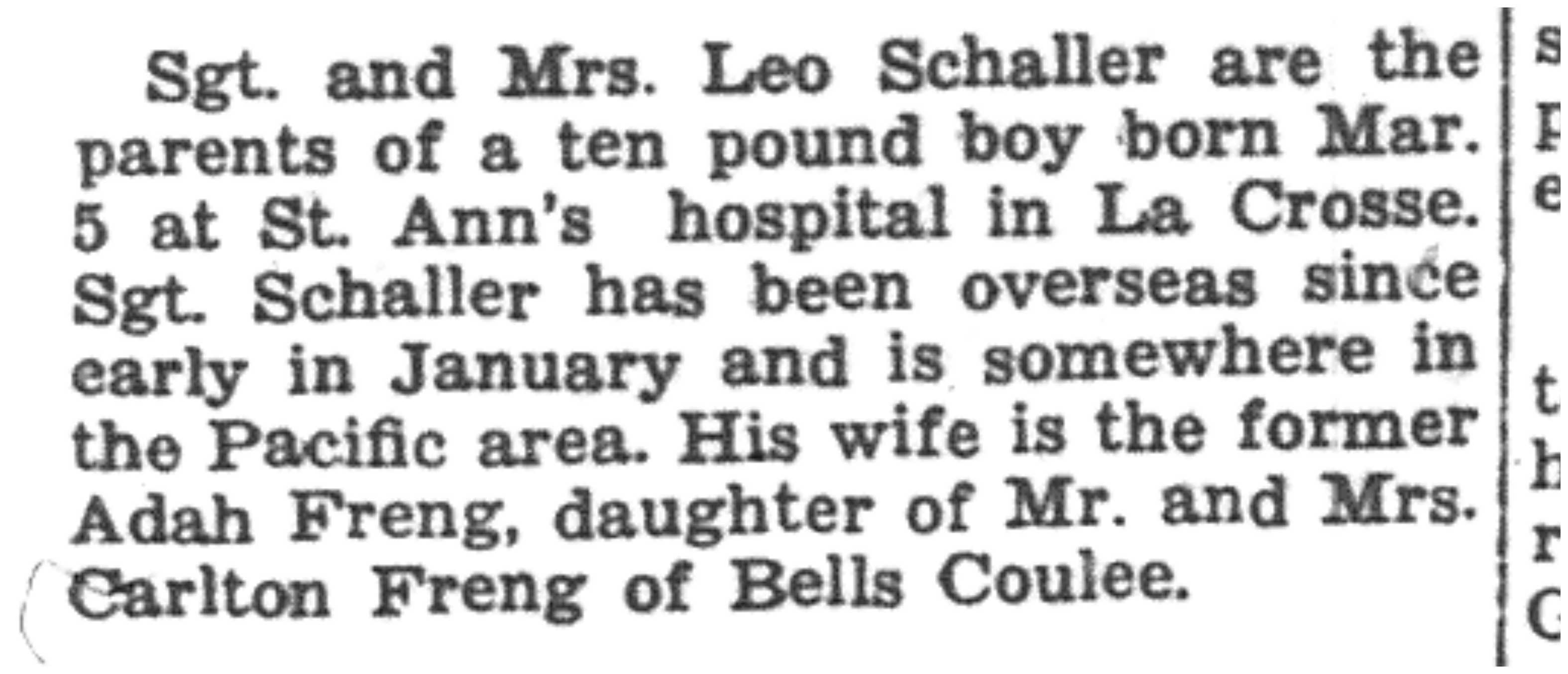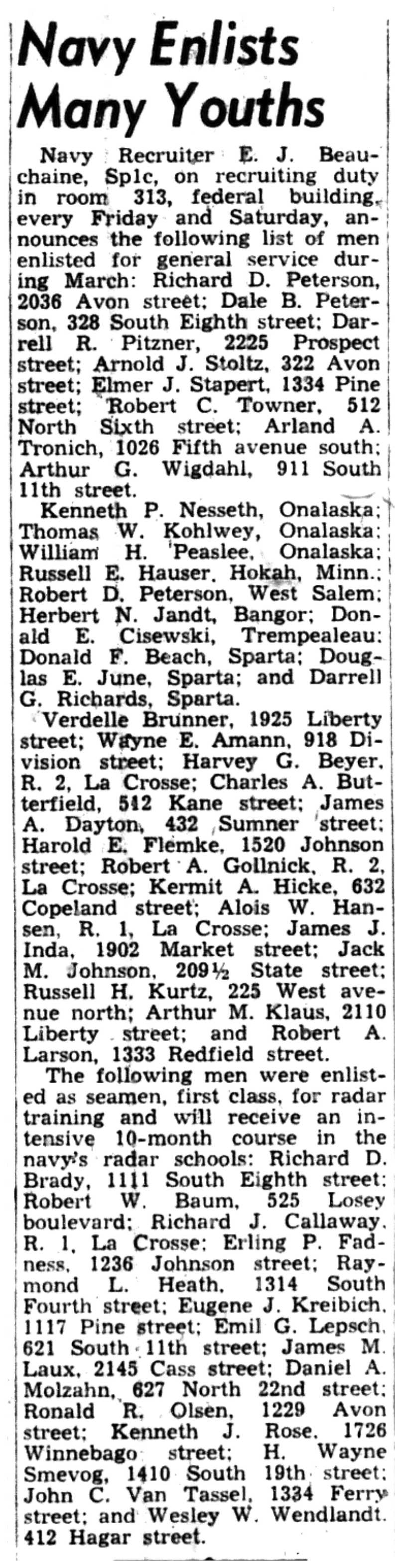 | 1945-3-30 | La Crosse Tribune p10 |