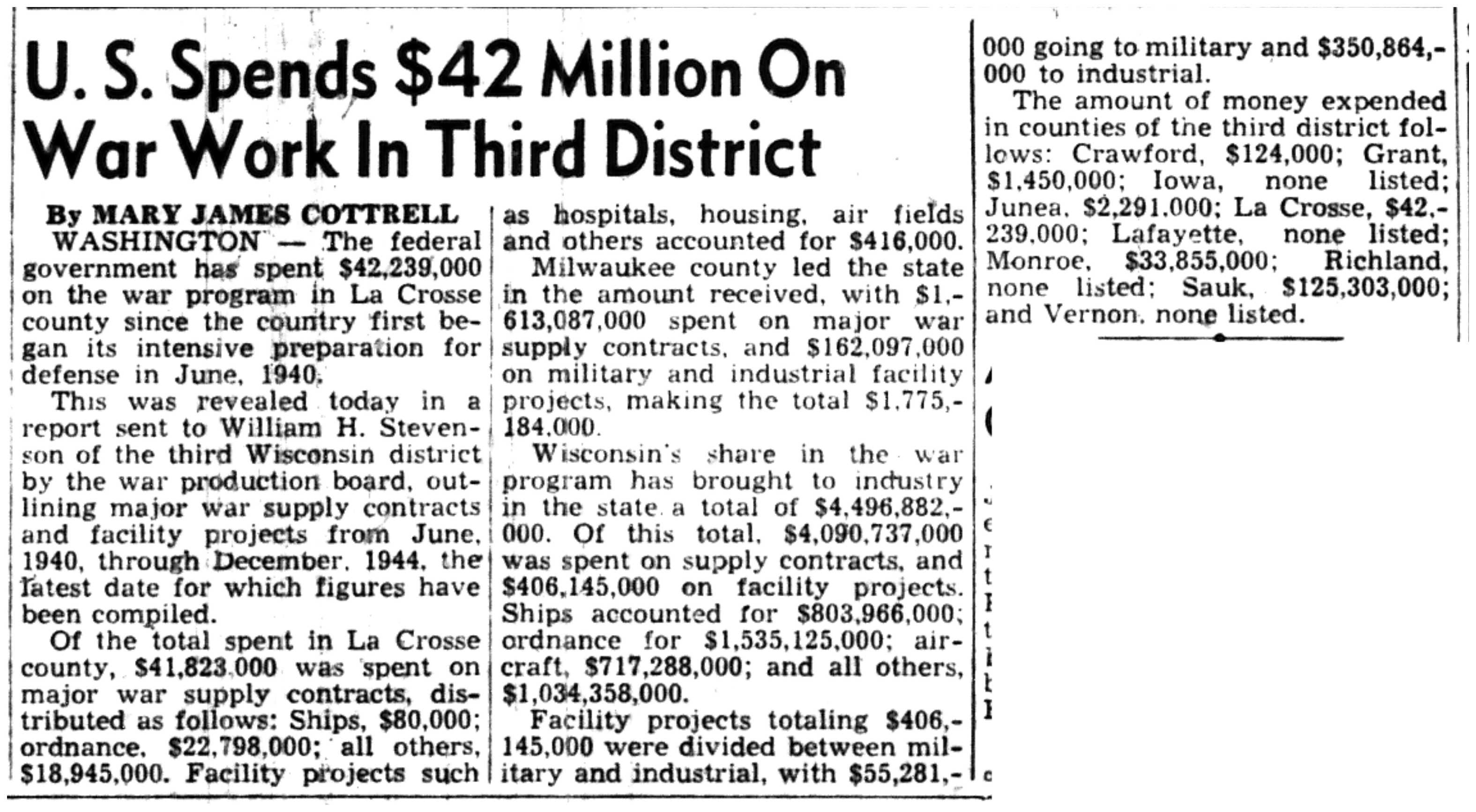 | 1945-3-3 | La Crosse Tribune p7 | |
