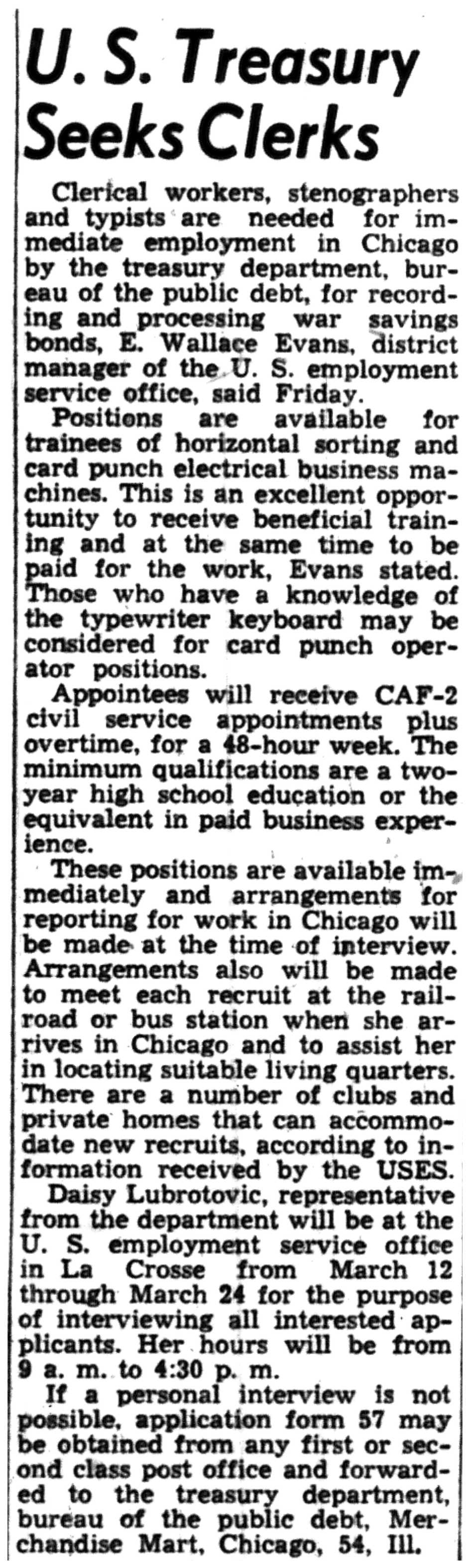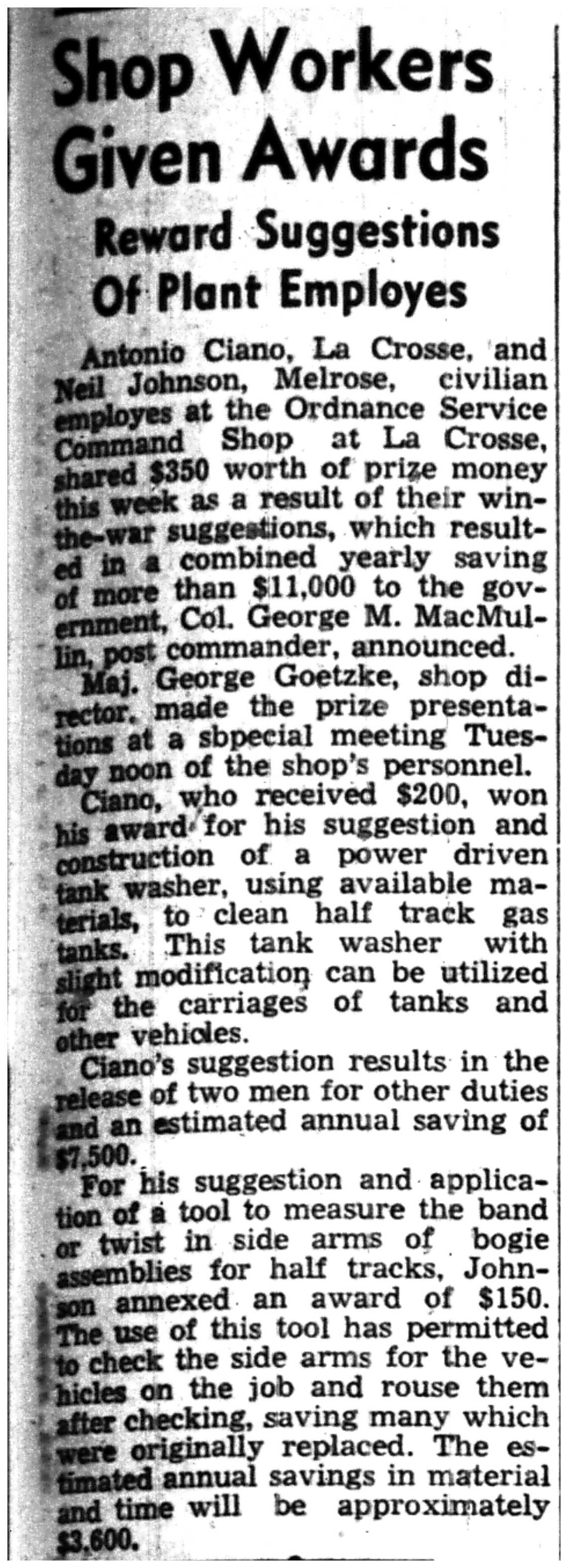 | 1945-3-15 | La Crosse Tribune p17 | |