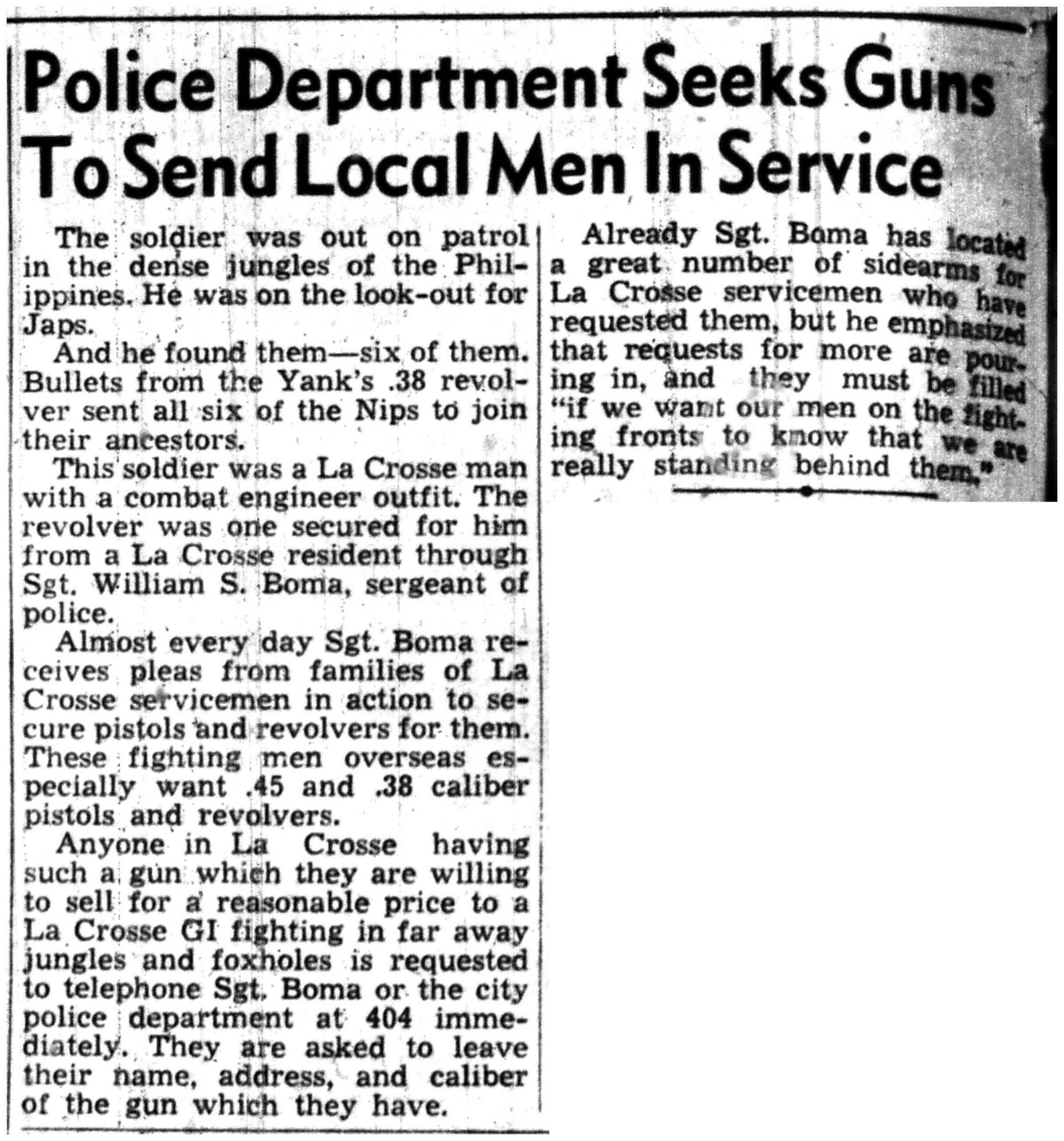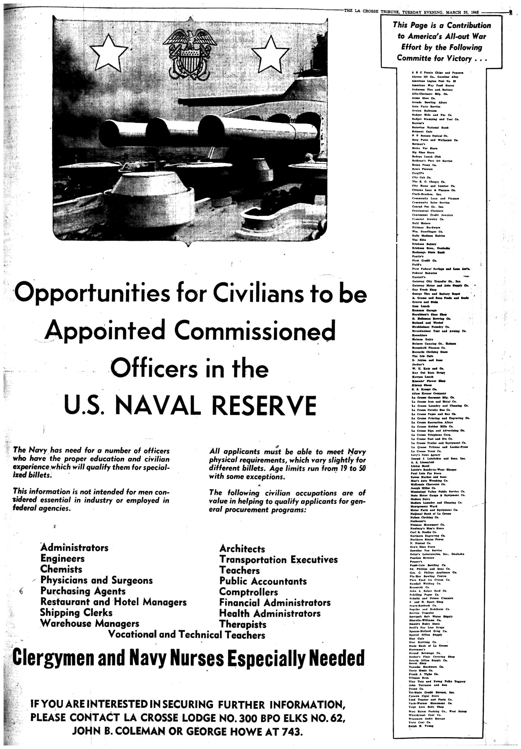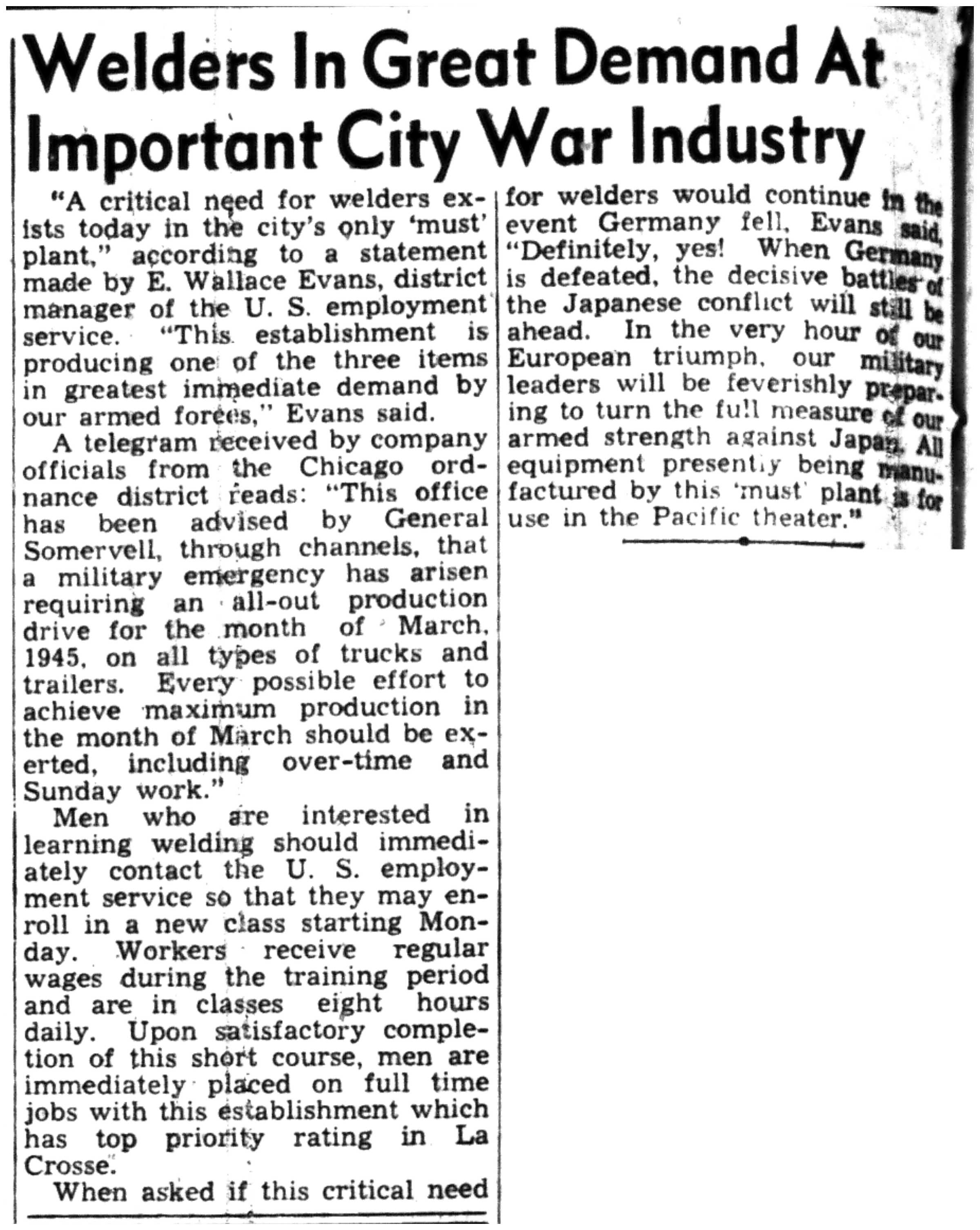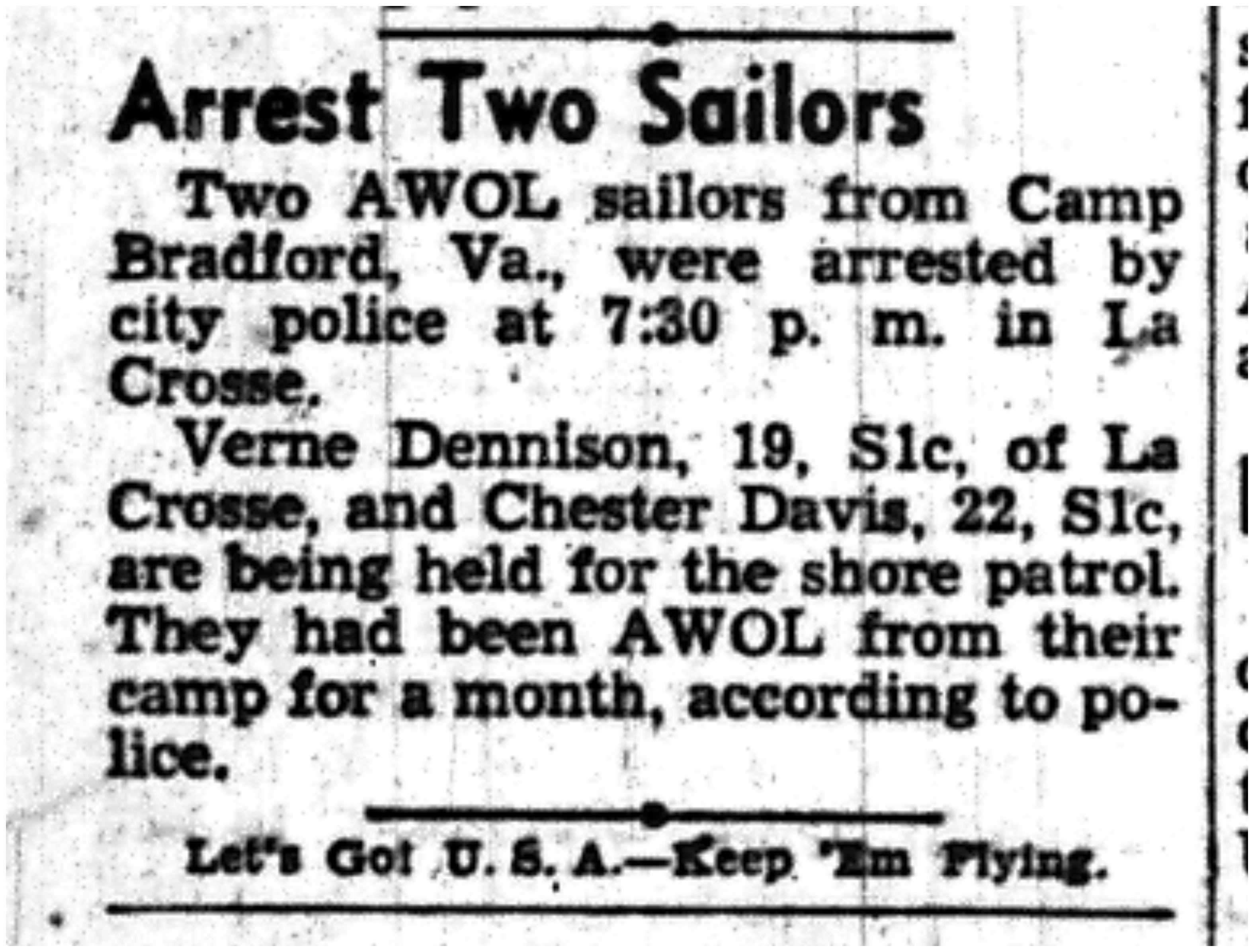 | 1945-3-30 | La Crosse Tribune p4 | |