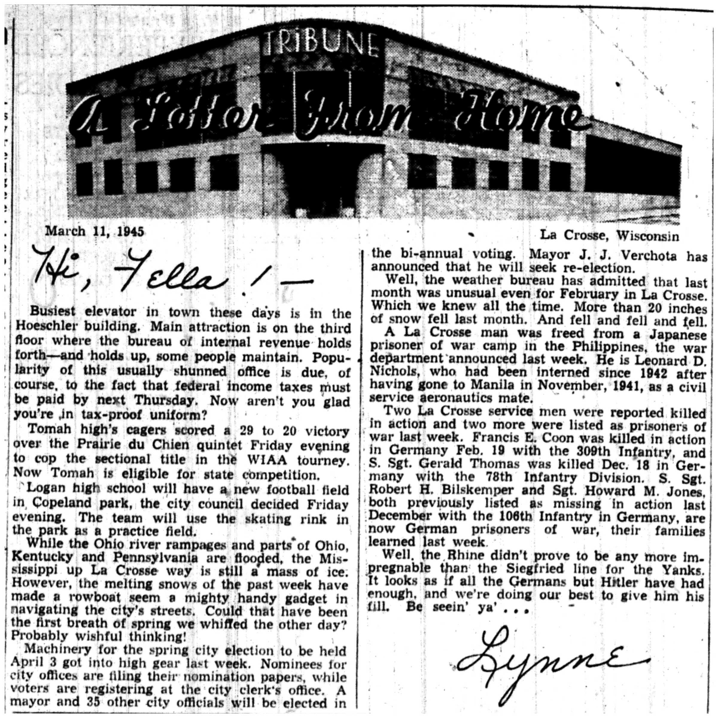 | 1945-3-11 | La Crosse Tribune p3 | |