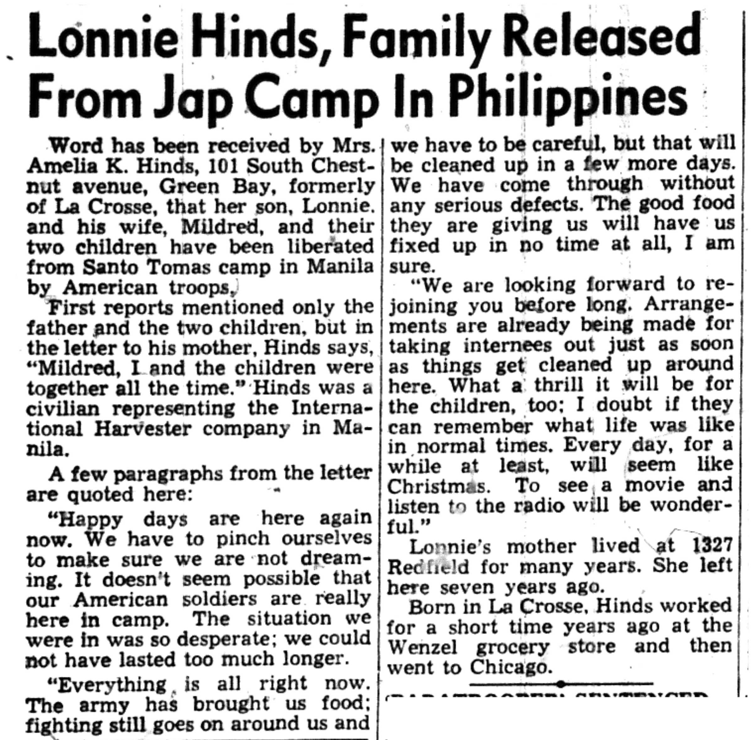 | 1945-3-8 | La Crosse Tribune p12 | |