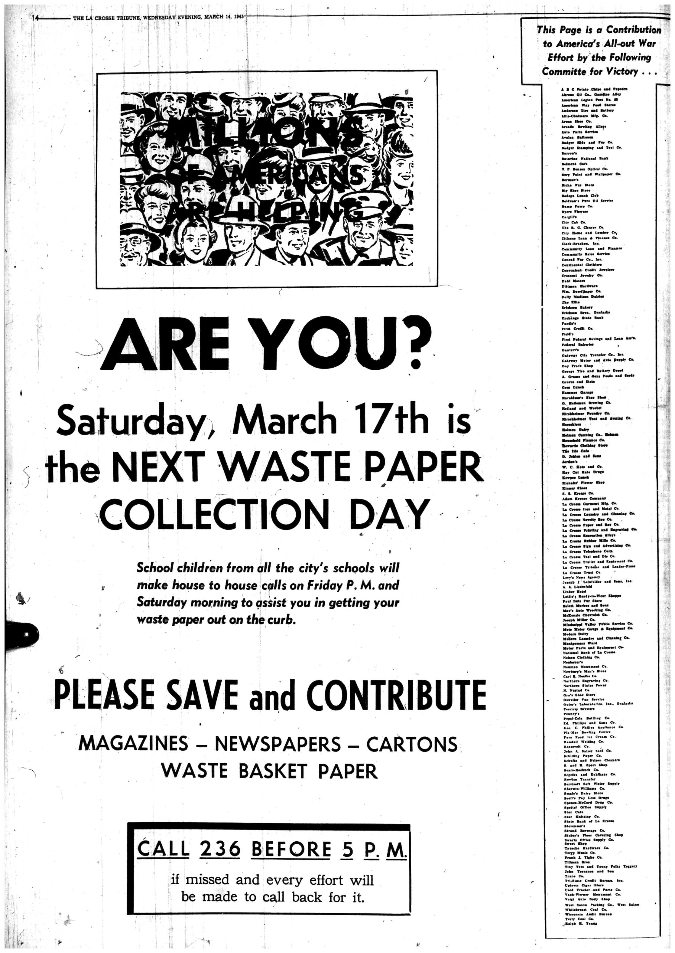 | 1945-3-14 | La Crosse Tribune p14 | |