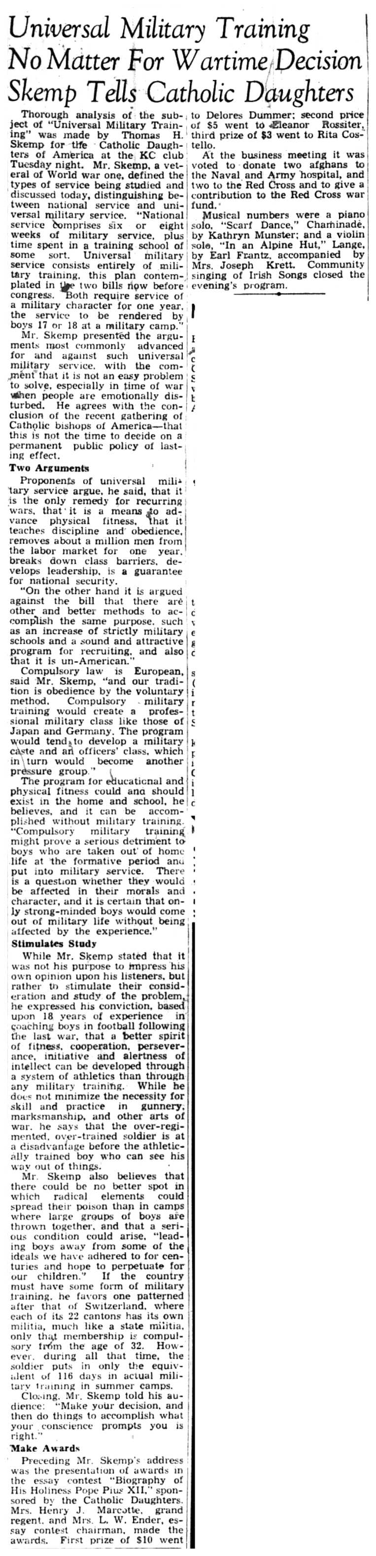 | 1945-3-8 | Non-Pareil Journal p7 | |