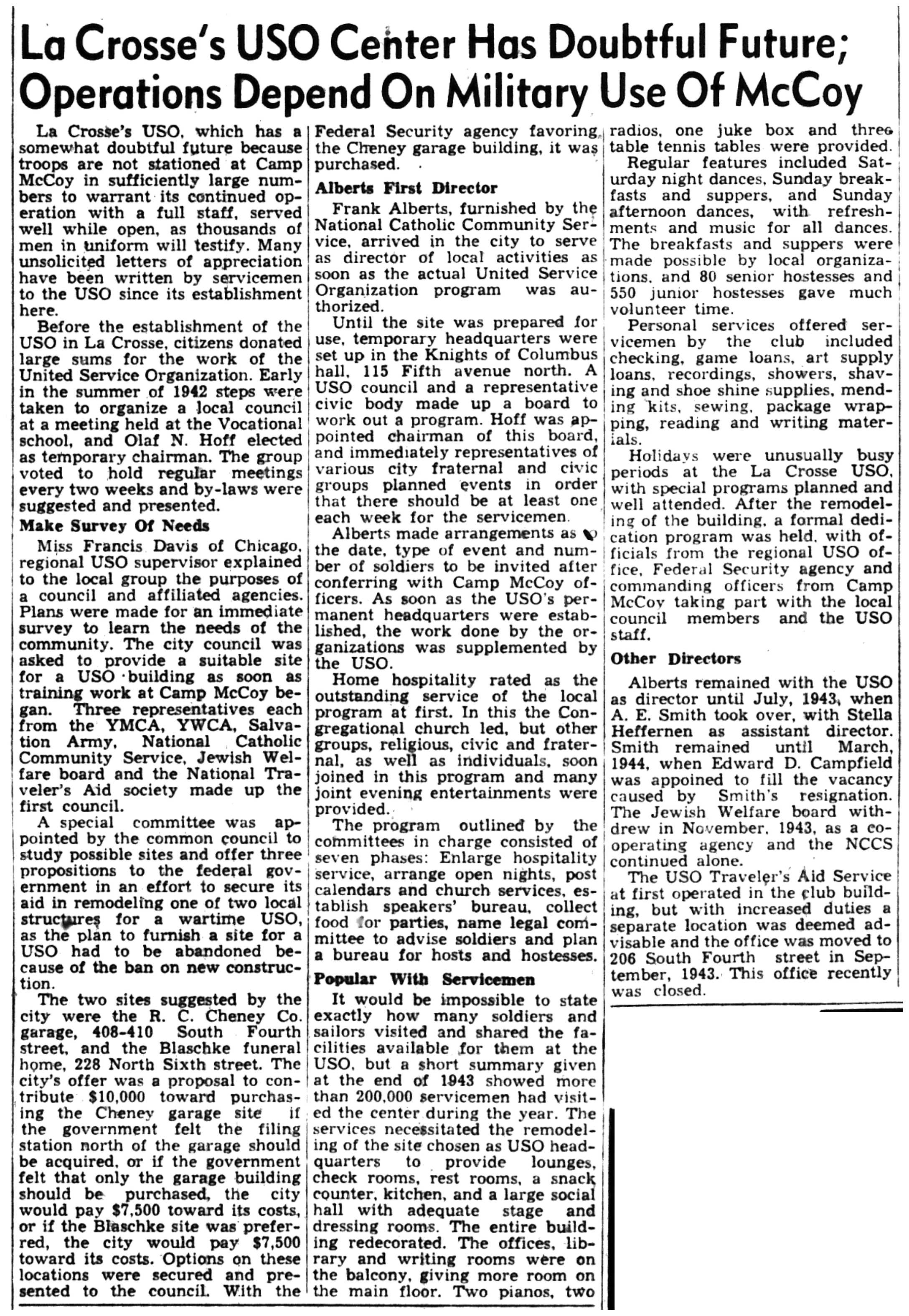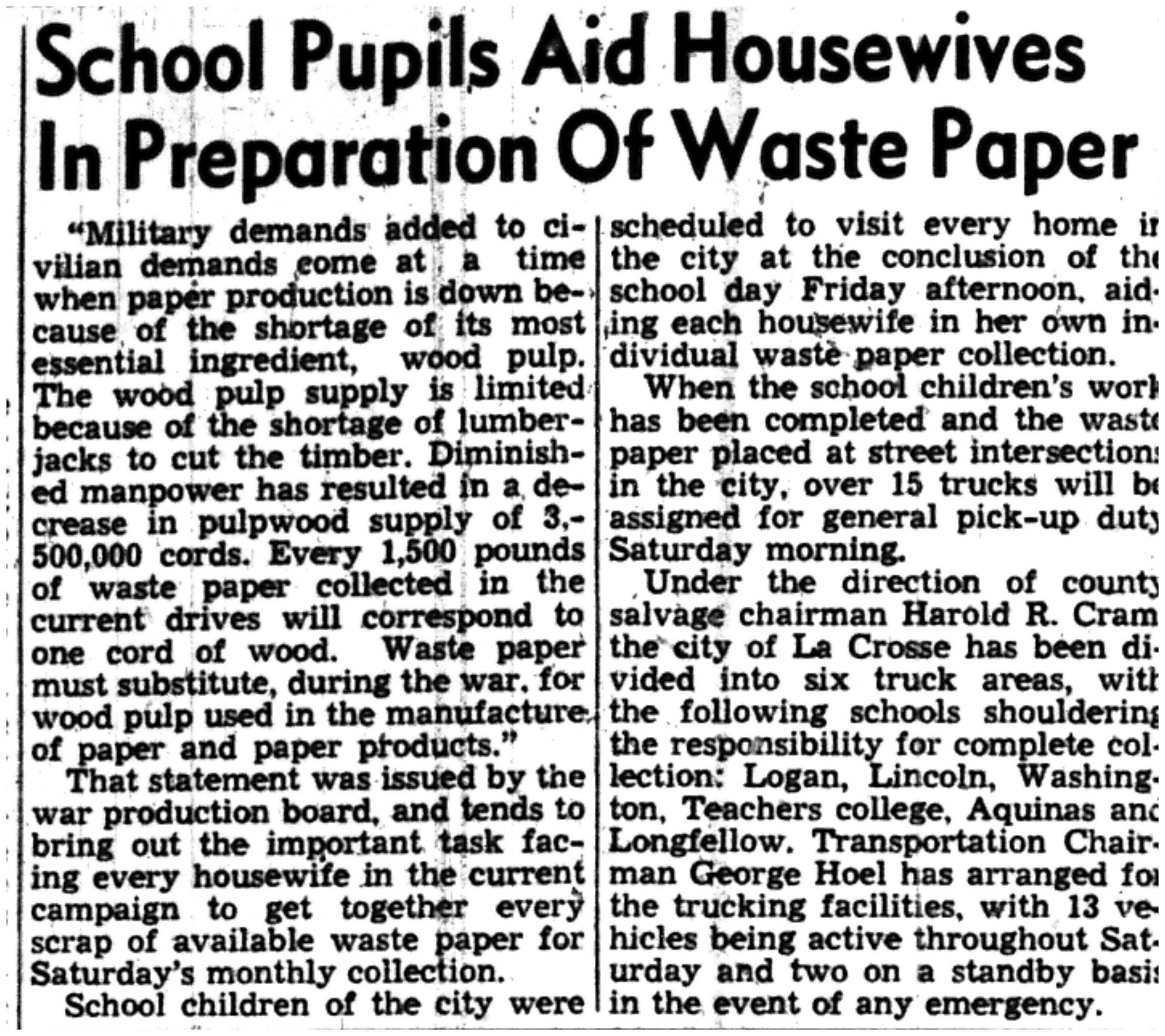 | 1945-3-1 | La Crosse Tribune p19 | |