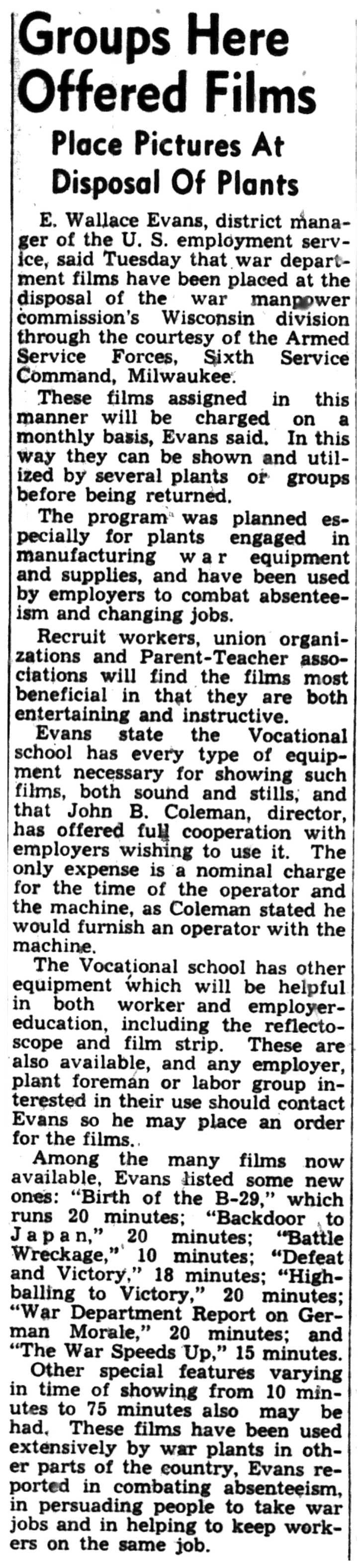 | 1945-3-27 | La Crosse Tribune p7 | |