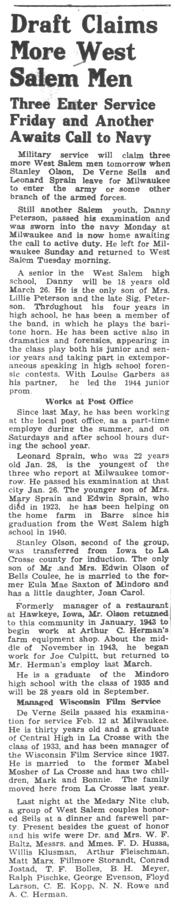 | 1945-3-29 | La Crosse County Record p8 | |