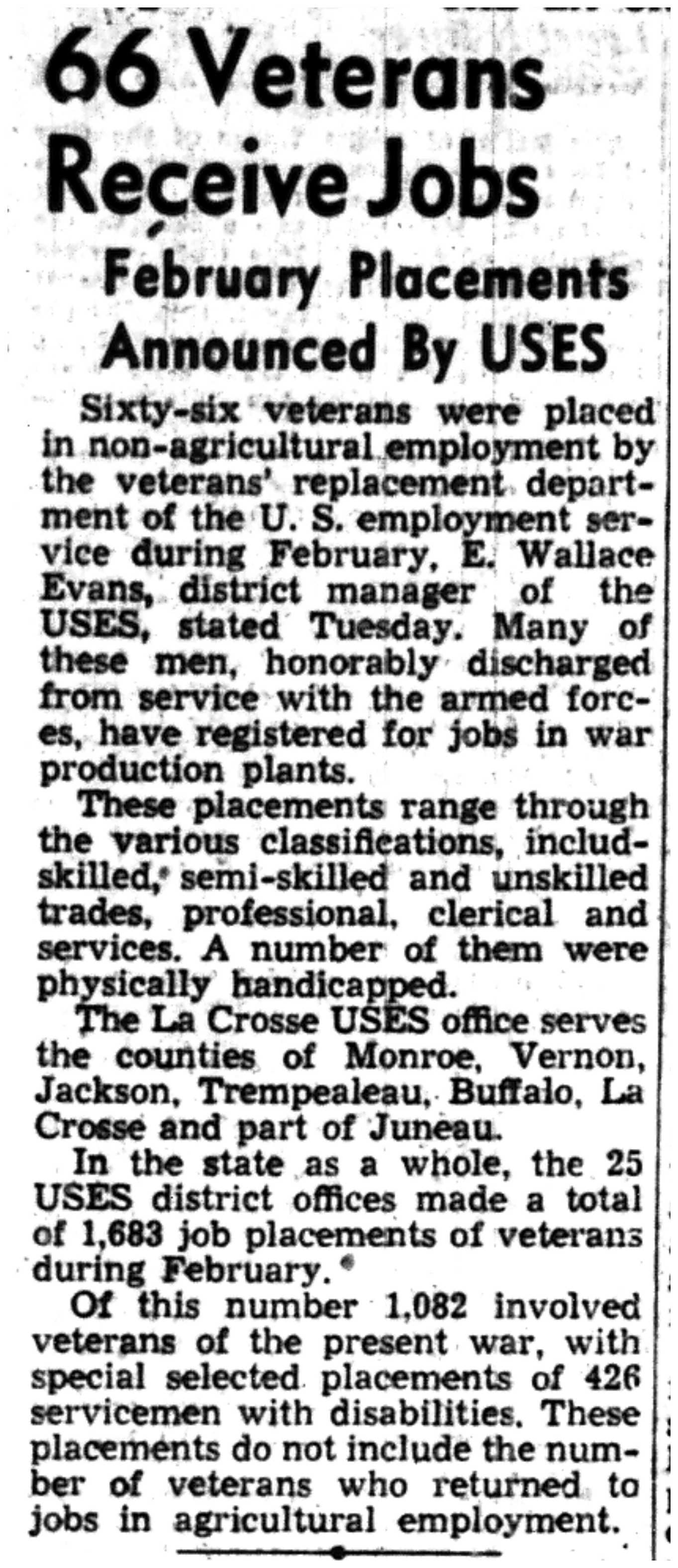 | 1945-3-1 | La Crosse Tribune p7 | |