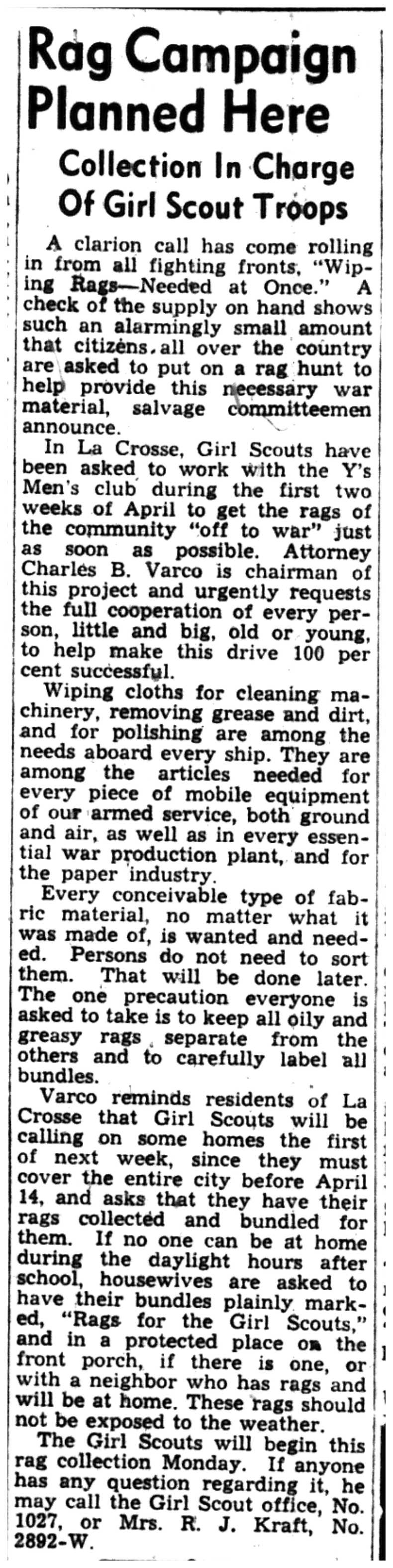 | 1945-3-30 | La Crosse Tribune p9 | |