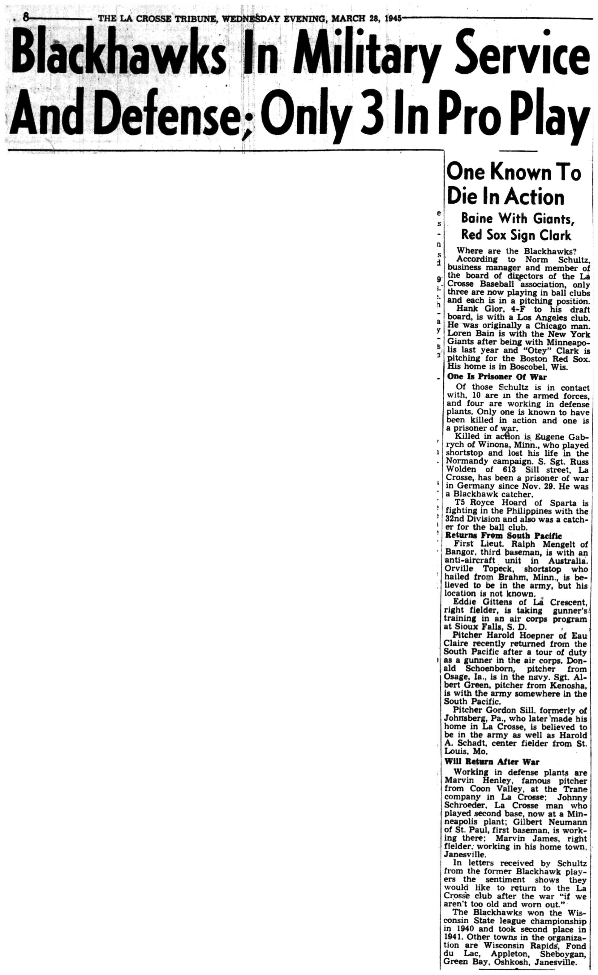 | 1945-3-28 | La Crosse Tribune p10 | |