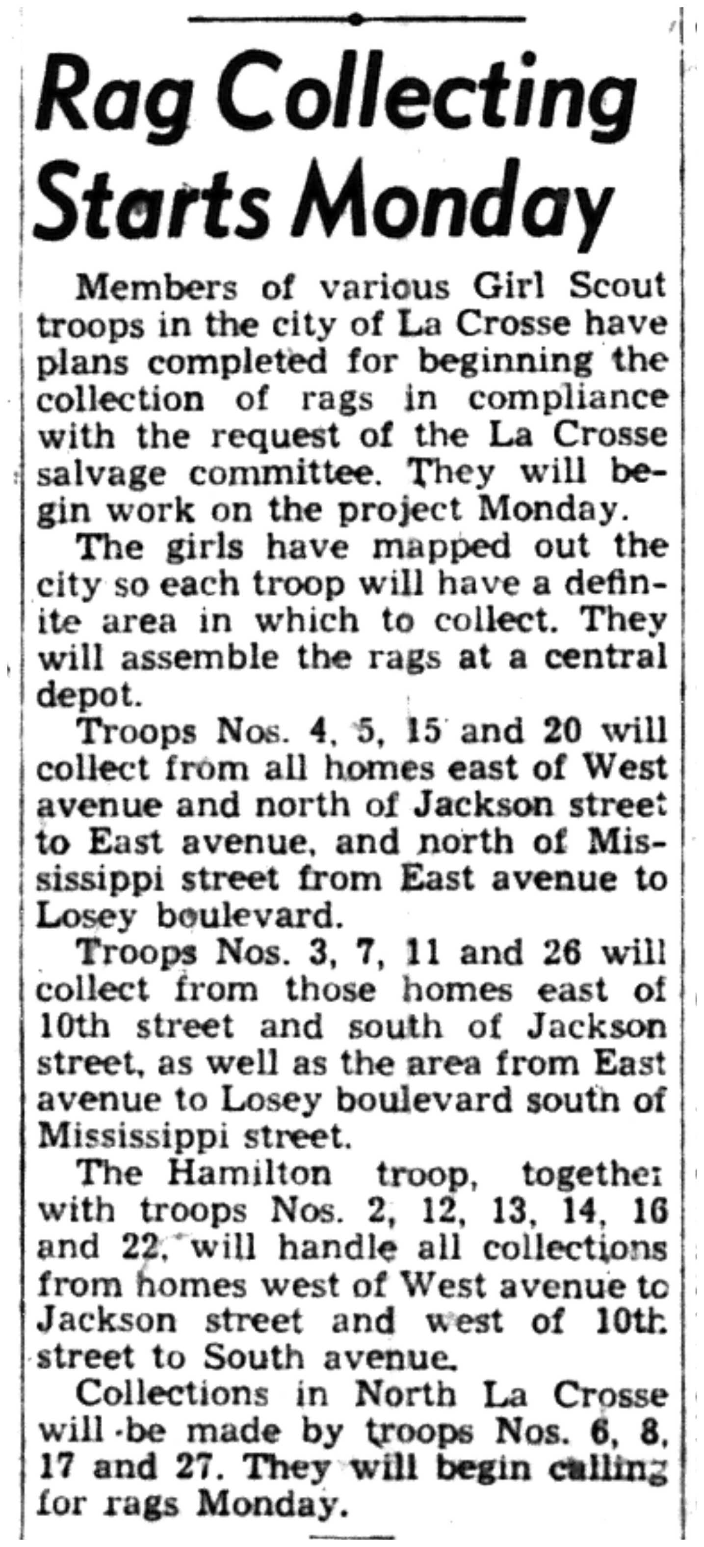 | 1945-3-8 | La Crosse Tribune p19 | |