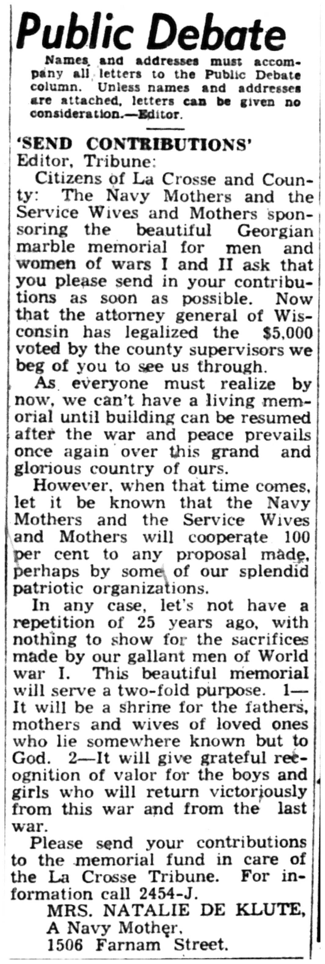 | 1945-3-27 | La Crosse Tribune p4 |