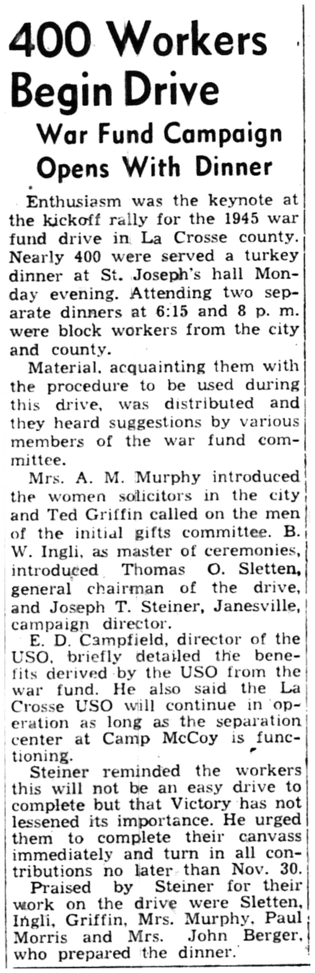 | 1945-11-22 | La Crosse Tribune p1 |