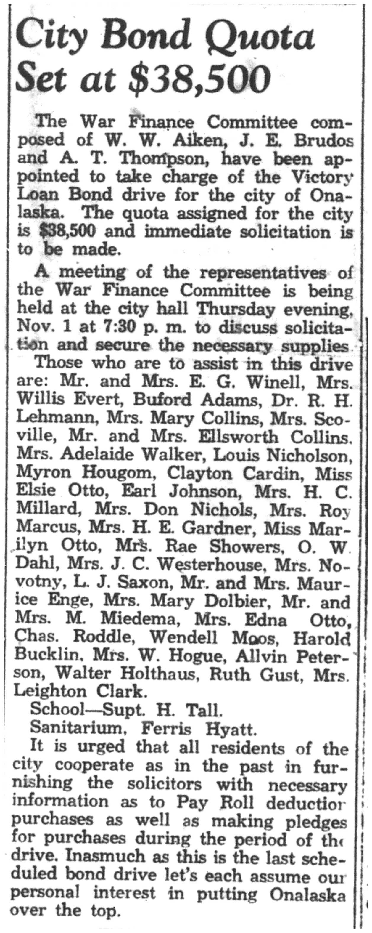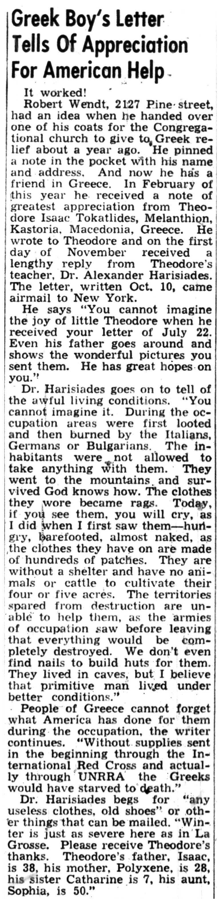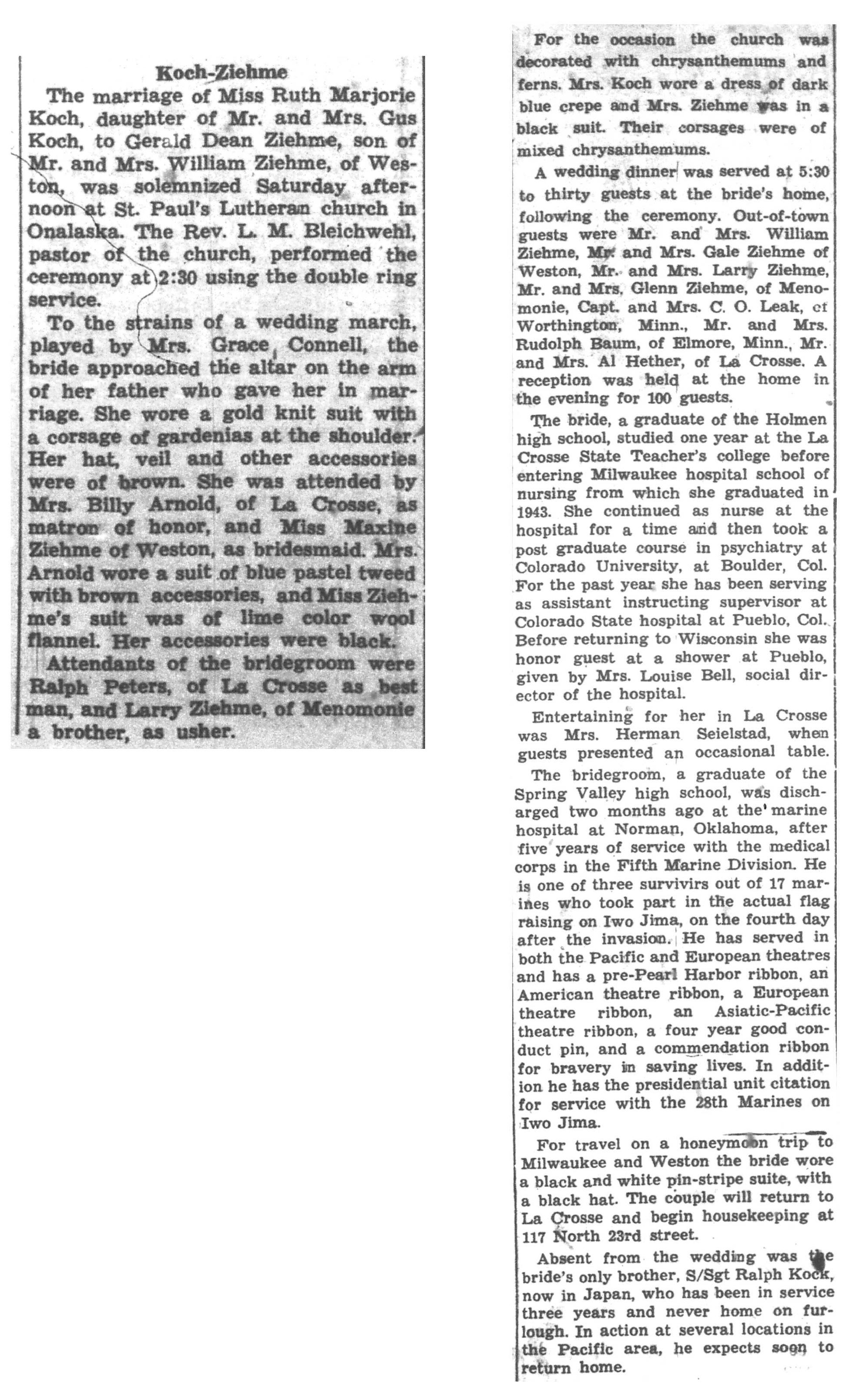 | 1945-11-7 | La Crosse Tribune p14 | |