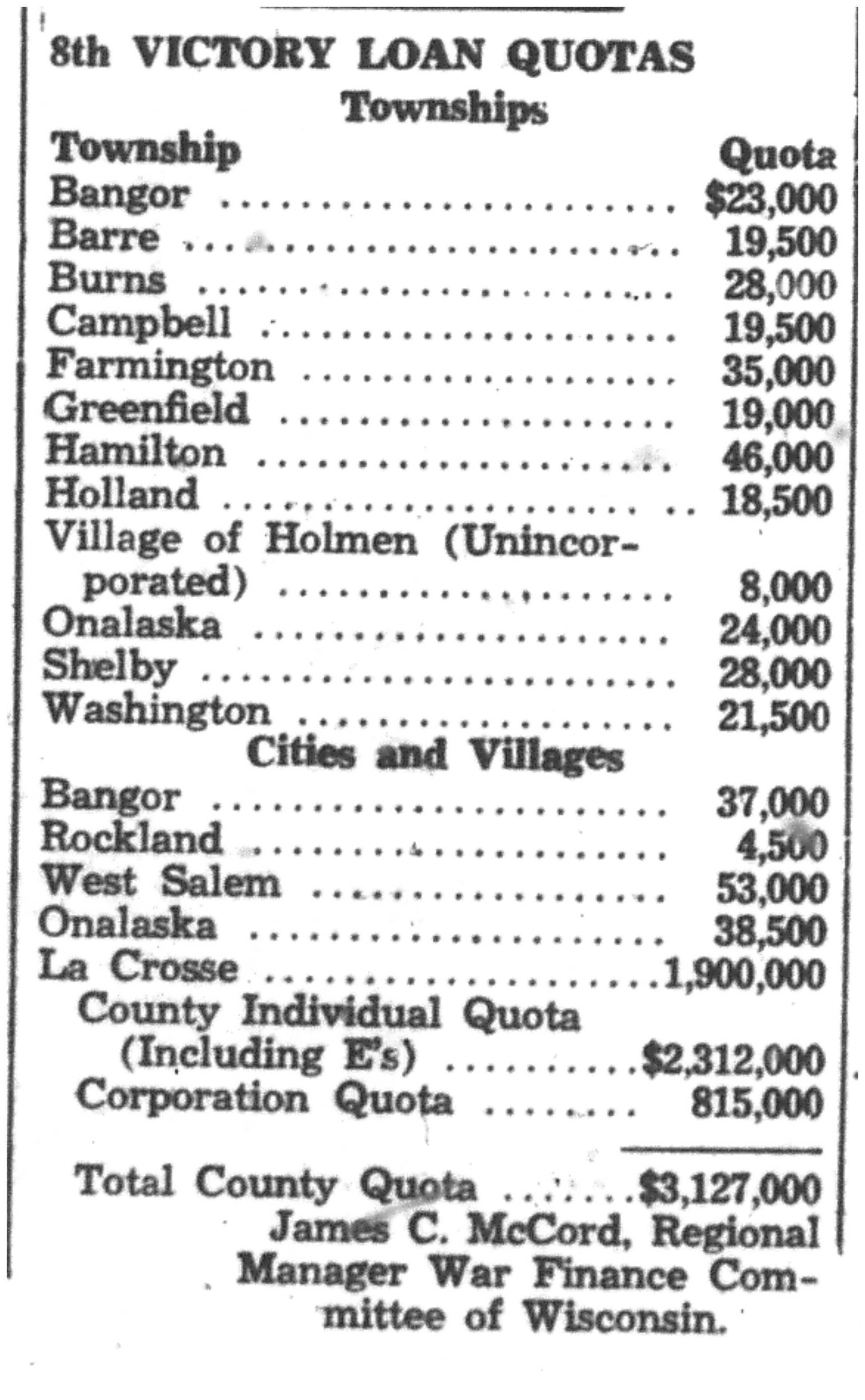 | 1945-11-8 | La Crosse County Record p1 | |