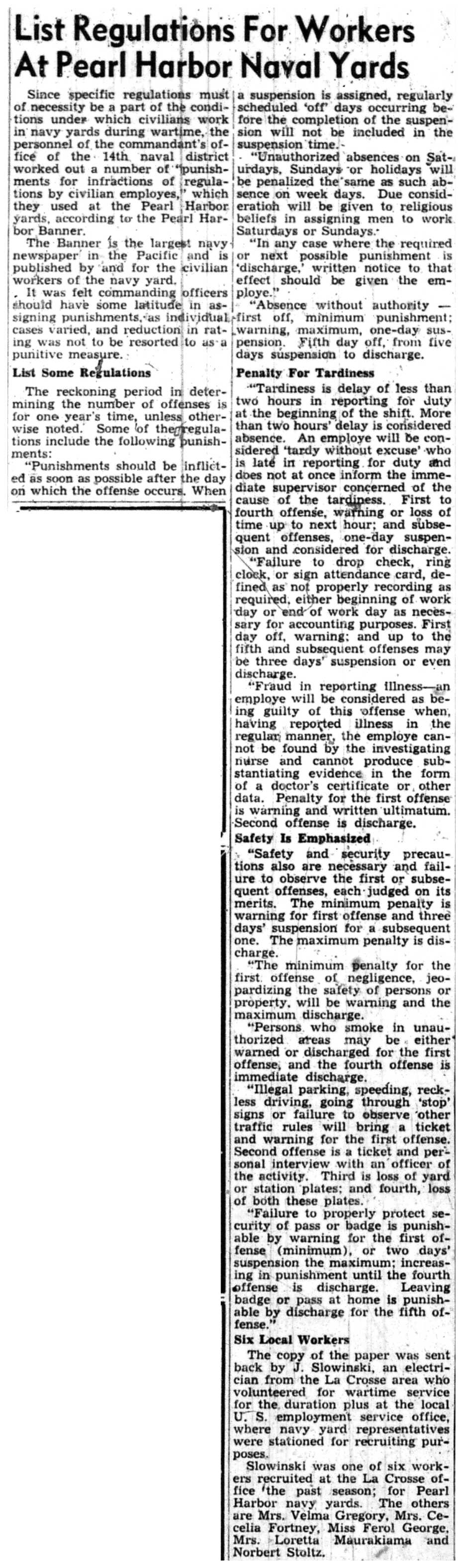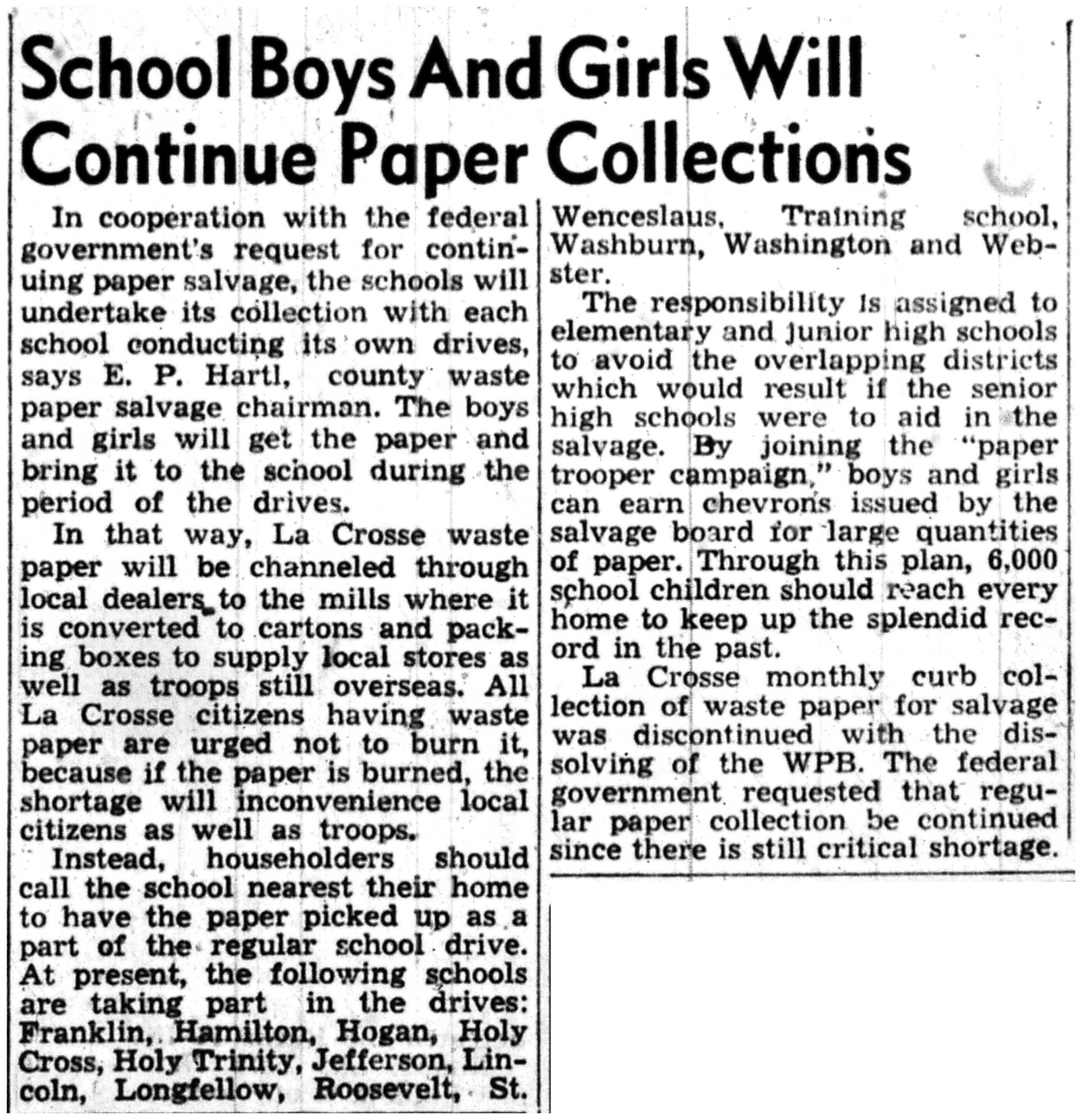 | 1945-11-30 | La Crosse Tribune p6 | |