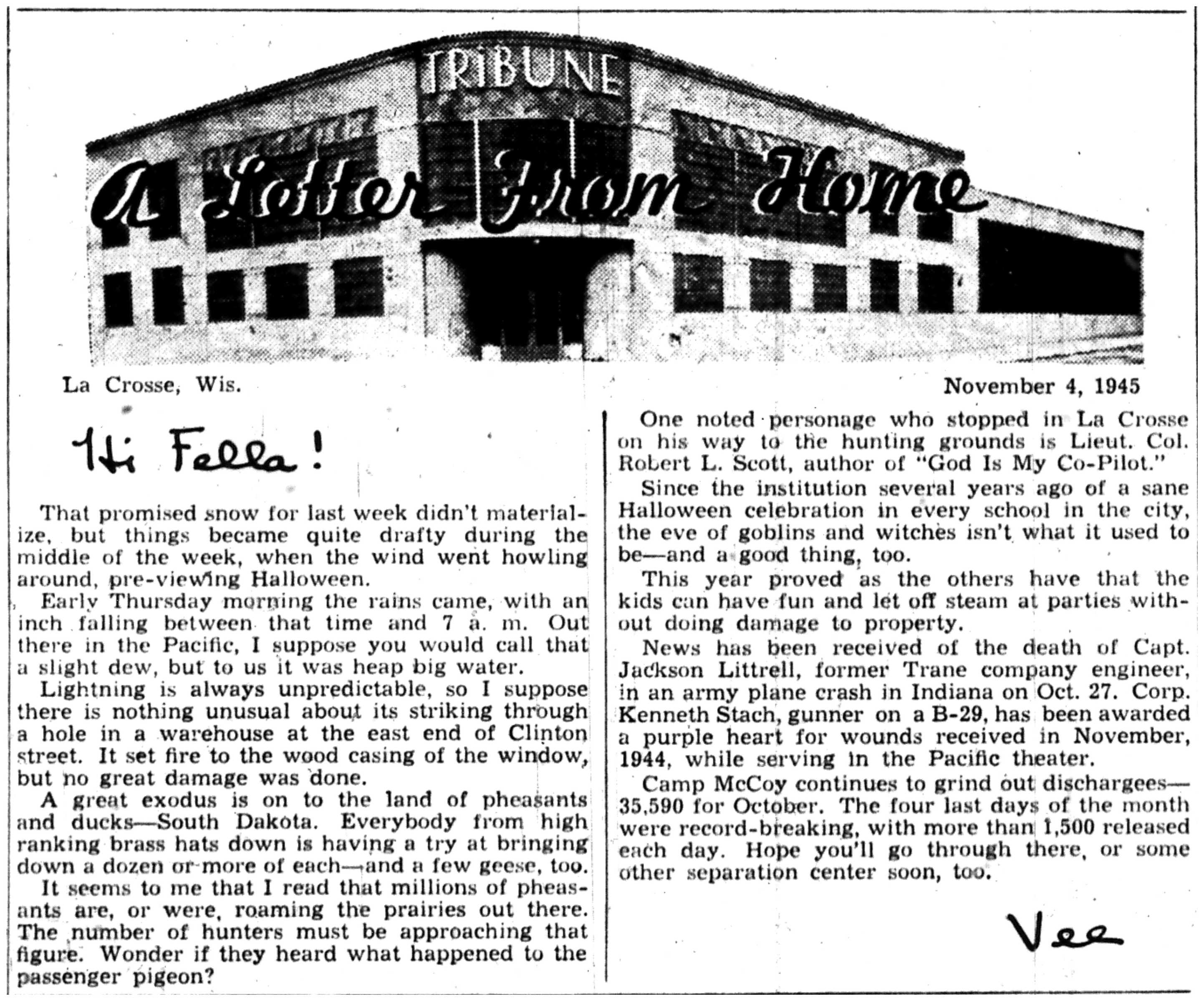 | 1945-11-4 | La Crosse Tribune p10 | |