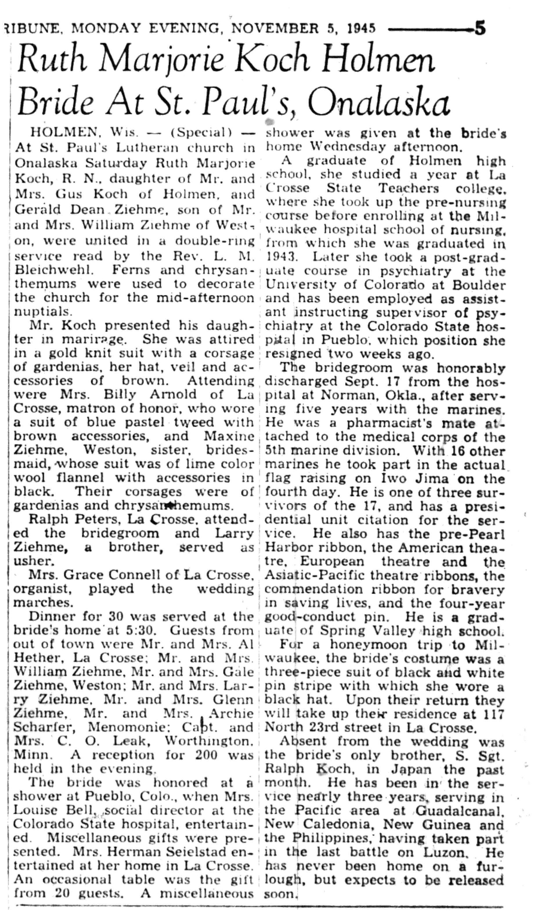 | 1945-11-5 | La Crosse Tribune p5 | |