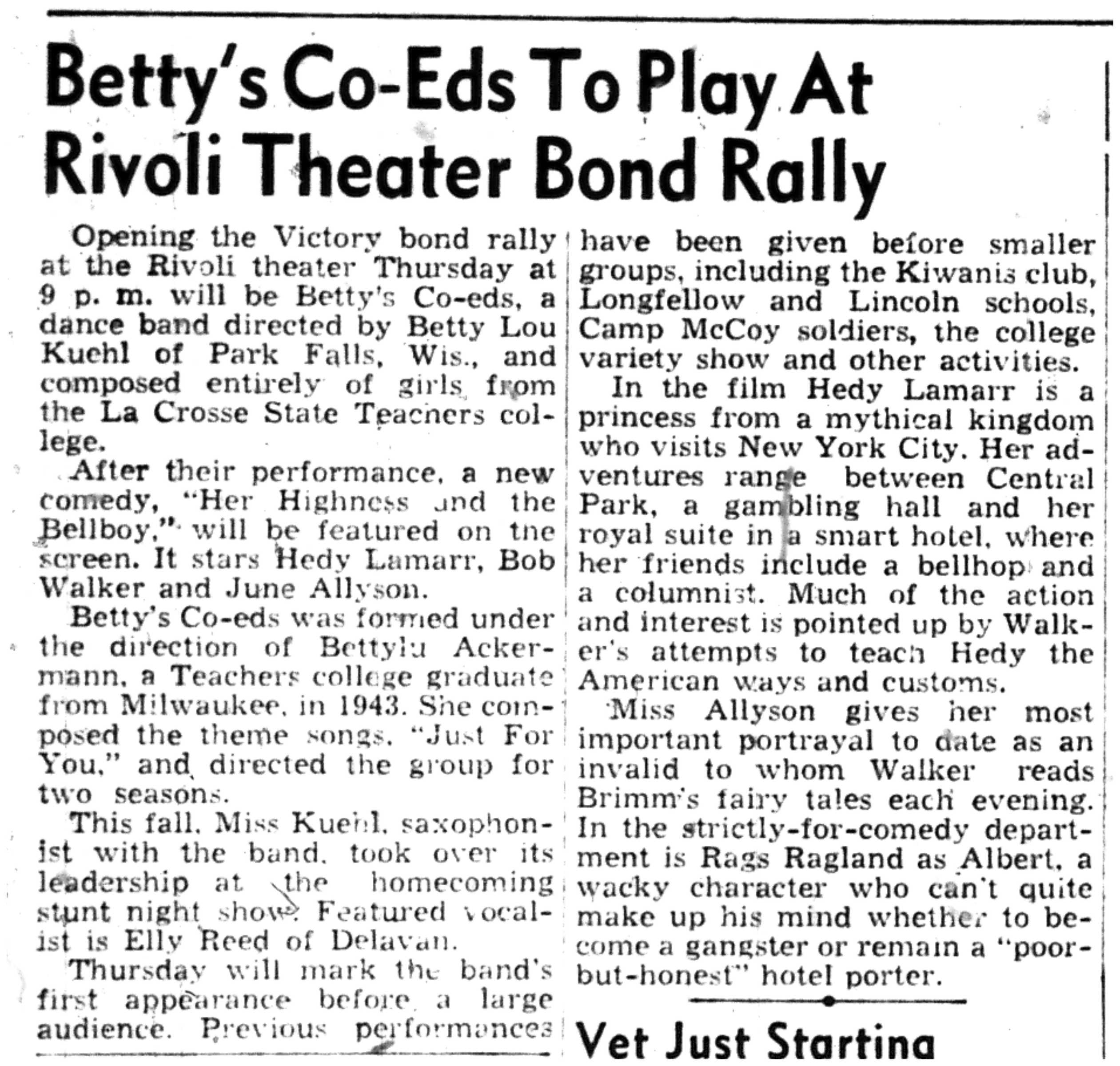 | 1945-11-11 | La Crosse Tribune p12 | |