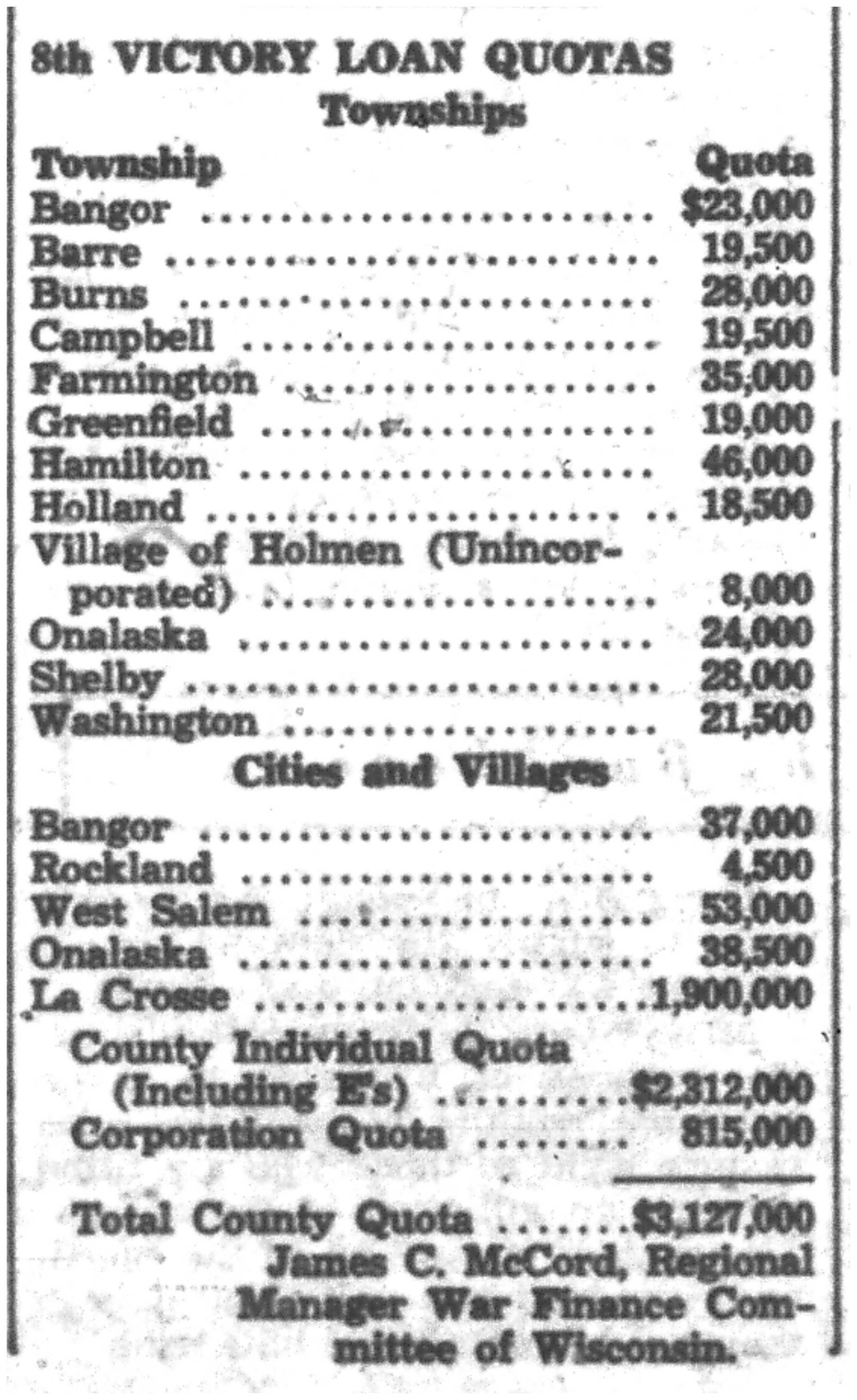 | 1945-11-15 | La Crosse County Record p1 | |